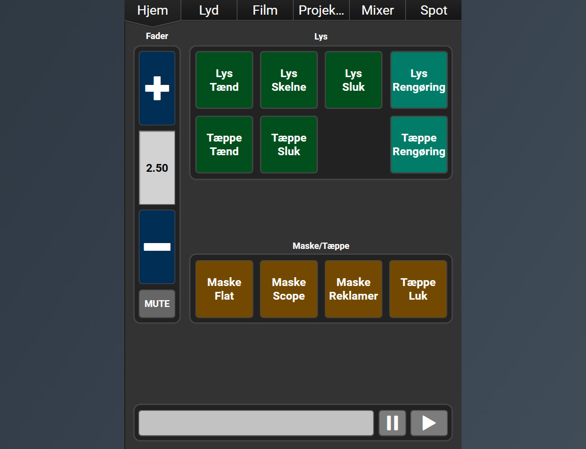 Løsningen vil helt sikkert gøre betjeningen af udstyret nemmere i dagligdagen. Design af brugerfladen foretages i samarbejde med brugeren, og den vil fremover være nem at ændre efter behov, ligesom løsningen senere kan udvides. Der indgår et touch-panel til betjening af udstyret, der typisk monteres ved indgangen til salen. Der vil nemt kunne tilsluttes flere touch-paneler, ligesom betjeningen af udstyret også kan foretages fra en PC.