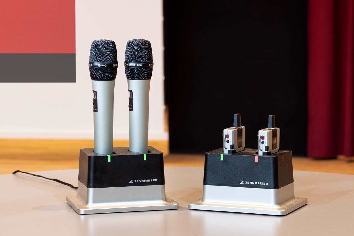 Når der er mange brugere af løsningen, er det vores erfaring at det er vigtigt at denne del er yderst brugervenlig, og nem at gå til for alle. Derfor skal mikrofonerne allerhelst bare være noget, der kan tages ud af en oplader og bruges med en hel enkel aktivering.