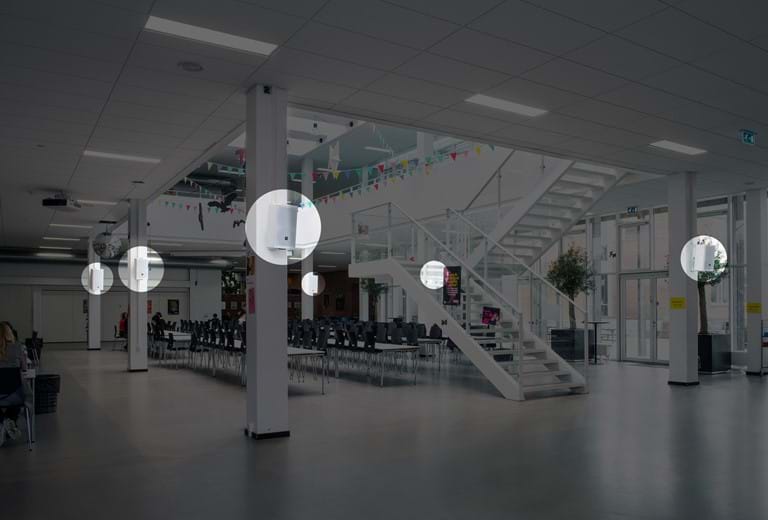Som nævnt indledningsvist er aulaen lydmæssigt ofte en lidt krævende størrelse. Hvis du ønsker en bred lyddækning af rummet, er du nødt til at sørge for højttalere der dækker hele dens areal.
