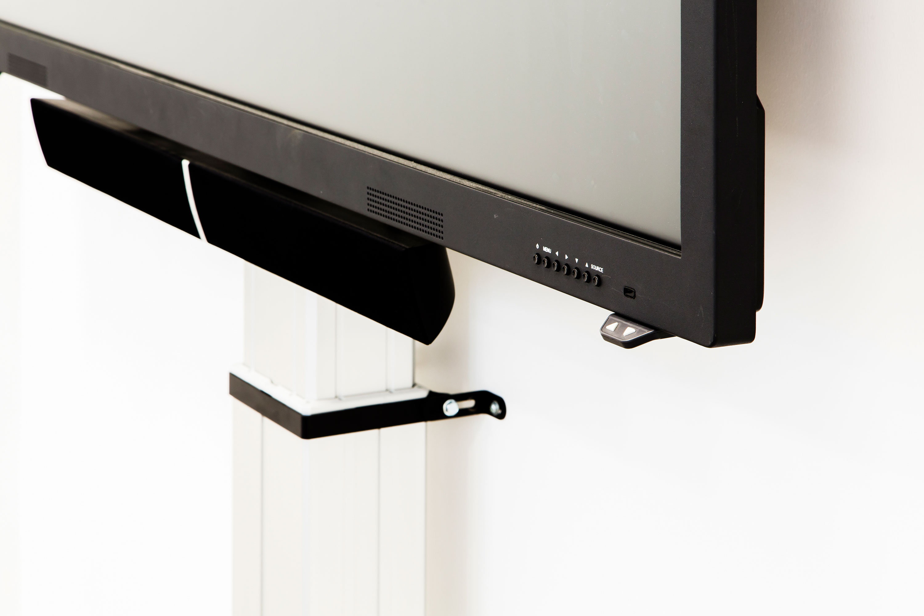 For at gøre den daglige brug af den interaktive tavle og interaktive touchskærm tilbyder vi et motoriseret hæve/sænkebeslag som sikrer, at du altid har den optimale arbejdshøjde. Med tavle eller touchskærme monteret på hæve/sænkebeslaget kan du hæve og sænke tavlen til den arbejdshøjde, der passer dig bedst. Kør tavlen op, hvis det er en voksen, der skal bruge den, og kør den ned, når de mindste elever fra indskolingen skal bruge den. Hvis du ønsker fuld fleksibilitet over din løsning kan løsningen monteres på et mobilt rullestativ som kan flyttes rundt efter behov. Hæve/sænkebeslaget kan monteres på både væg og mobilt rullestativ.