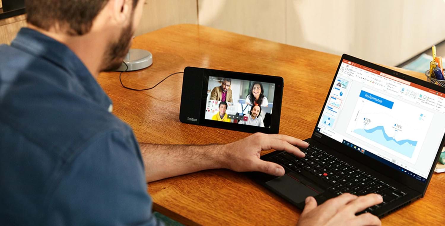 Bruger din virksomhed Office365 og Teams som kommunikationsplatform har Lenovo udviklet ’ThinkSmart View’, som er er den oplagte Teams-assistent. ThinkSmart View har indbygget skærm, kamera, højttaler og mikrofon og kan stå enten horisontalt eller vertikalt på skrivebordet ved siden af din skærm. Med ThinkSmart View får du en dedikeret enhed, hvor du kan holde dine teams-møder – såvel planlagte som impulsive, samt holde styr på din kalender.