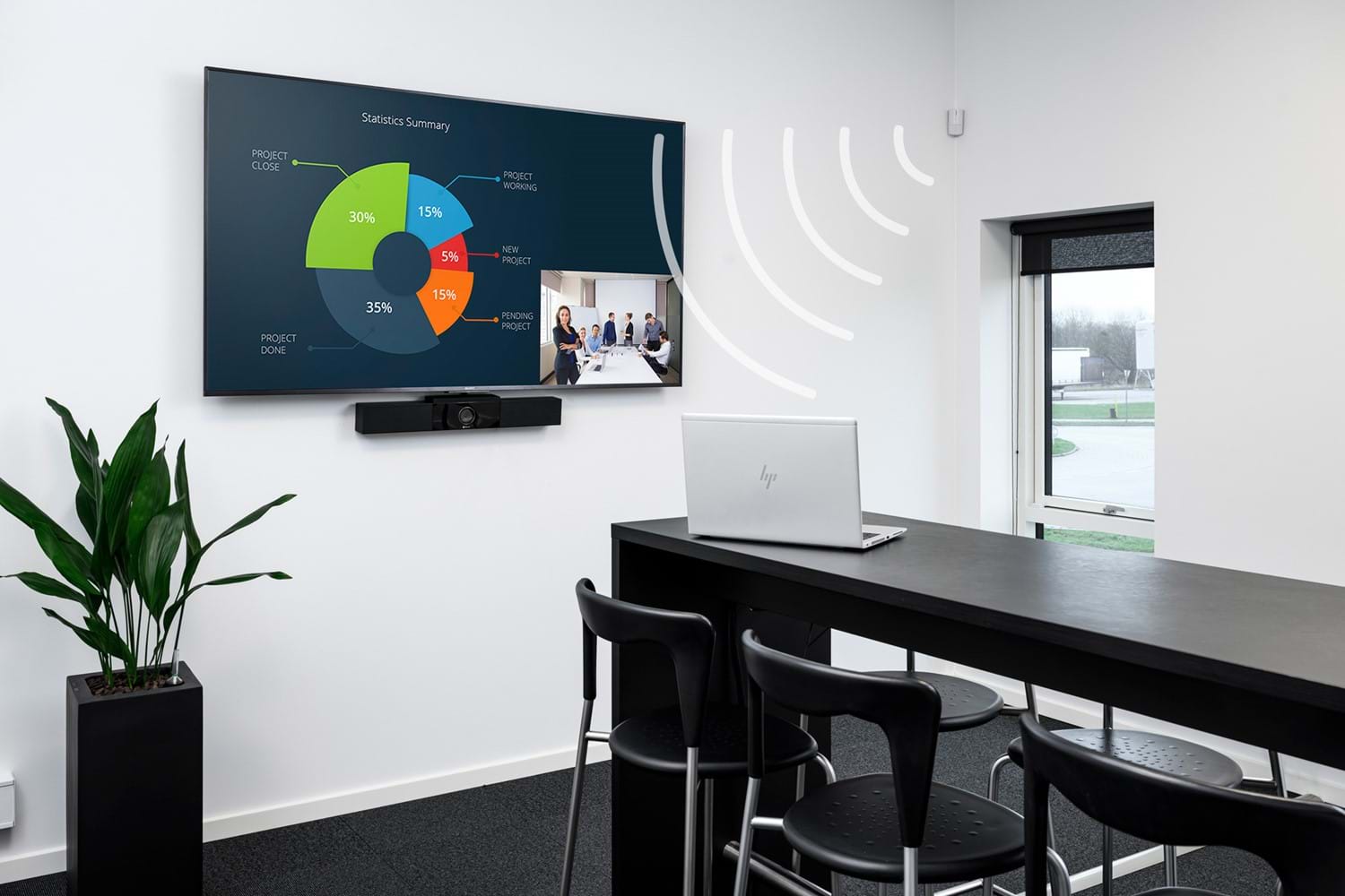 Videokonference-løsningen, som blev nævnt før, er et oplagt sted at starte. Din virksomhed vil let og hurtigt kunne gøre ikke blot eksisterende mødelokaler men også kontorer, gang-arealer, huddle-rooms og lignende til videokonference-understøttede. Det er ikke alle møder der kan erstattes af online videomøder, men mange vil omvendt overraskes over hvor stor en procentdel der alligevel er tale om. |