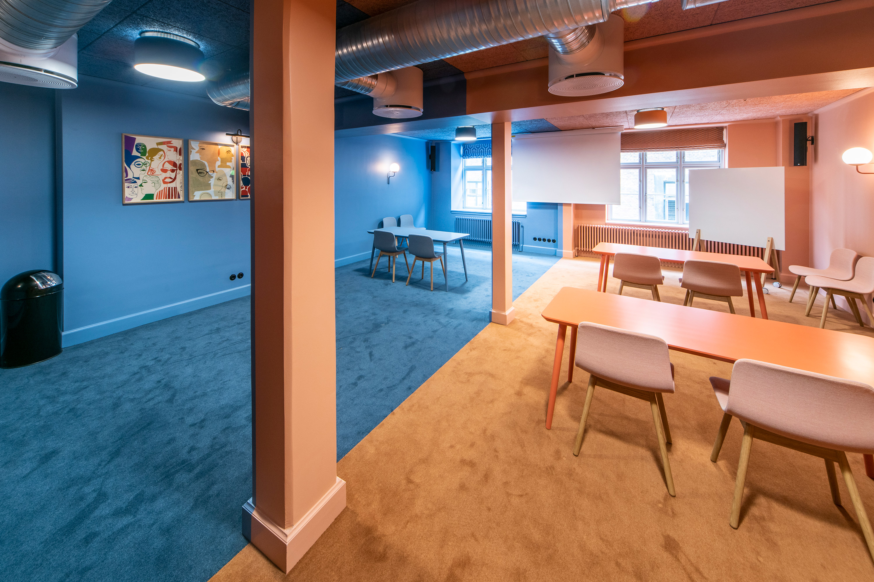 Et af mødelokalerne - opdelt i to farver.