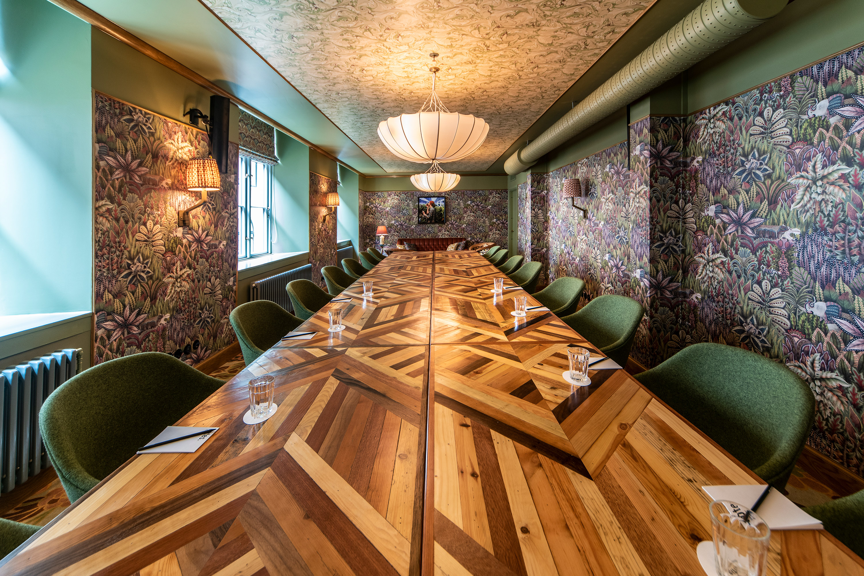 Møde- og konferencefaciliteterne er ikke som man ser dem på andre hoteller. Hotellets designer har lagt vægt på stærke og kontrastfyldte farver og de mange detaljer i rummene får det hele til at gå op i en højere enhed.