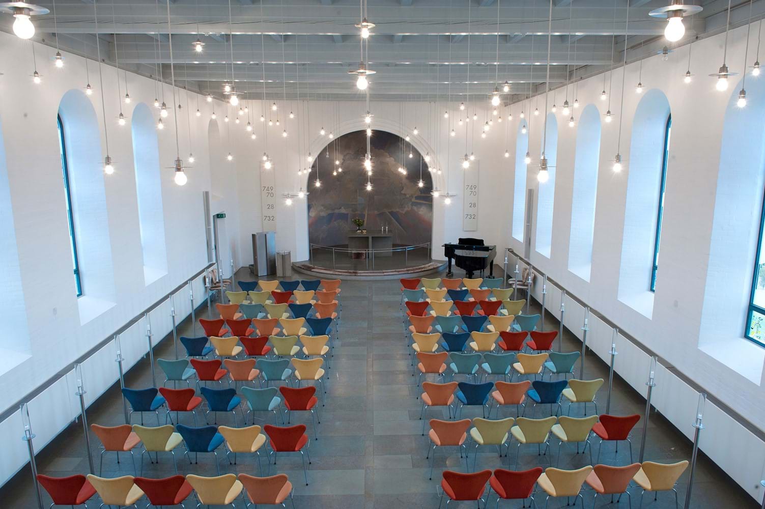 Til Ansgarkirken i Hedehusene har vi leveret en løsning med i alt fire Bose MA12 højttalere fordelt med to i hver side. Betjening sker via BOSE betjeningspaneler, der er placeret både forrest og bagerst i kirken.