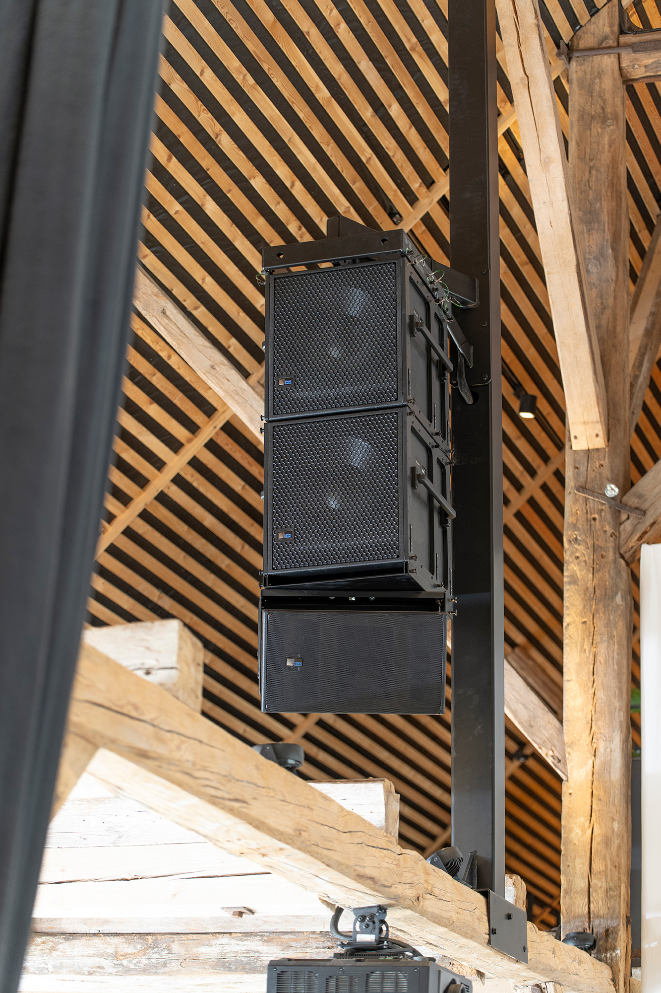 For at sikre en fremragende lydkvalitet og ensartet lyd tryk i hele lokalet, har vi implementeret et omfattende Meyer Sound højttalersystem med delay højttaler. Meyer Sound er kendt for deres præcision og lydkvalitet, hvilket gør dem ideelle til både tale og musikalske indslag i lokalerne. Meyer Sound højttalerinstallationen går igen på toiletterne, hvor der er opsat Meyer Sound indbygningshøjttalere i loftet.