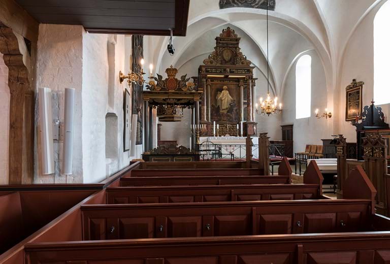 Dronninglund Kirke i Nordjylland er en smuk gammel kirke, der kan dateres helt tilbage til 1200-tallet, hvor den fungerede som klosterkirke for Hundslund nonnekloster. Vi har til kirken leveret en komplet lydløsning med BOSE MA12 højttalere og Sennheiser mikrofonsystem.