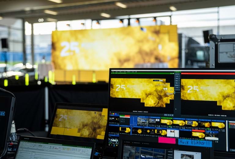 Den tekniske løsning bestod blandt andet af 2.5 meter høje LED-pyloner til netværksområdet, komplet lyd & lys løsning, samt 28m2 LED-storskærm, der fungerer som bagtæppe på scenen.