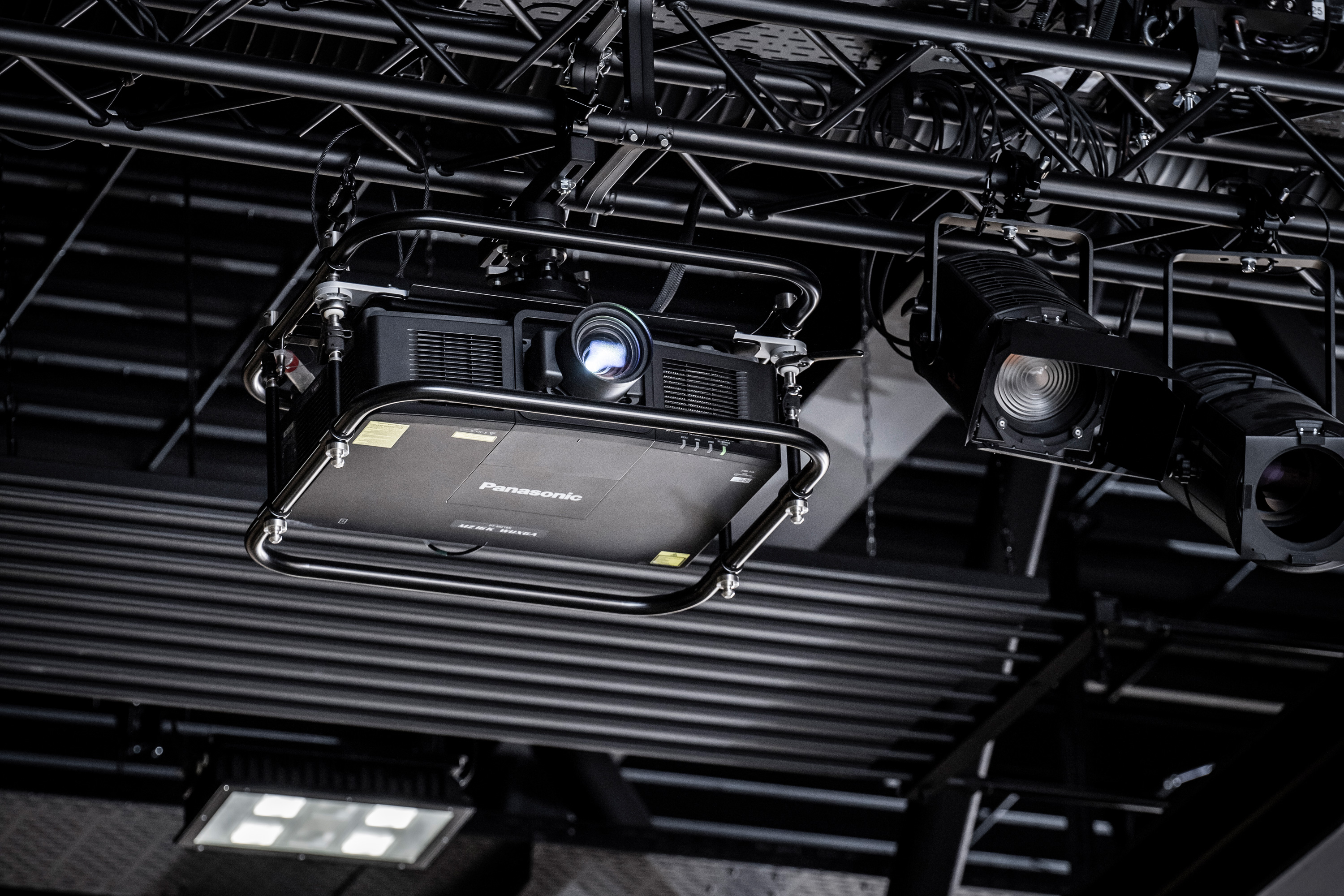 Billedstyringen er unik, da en Analog Ways Aquilon C+ billedmixer og DSP processering kan lave et billedfelt, der kan fylde hele langsiden af hallen på 42 m. I daglig brug opdeles billedet selvfølgelig i mindre felter og bliver håndteret af tre Panasonic laserprojektorer med 16.000 lumens, der skyder op på Strumpfl rammelærreder med afmaskning af billedfelt. Projektorer og lærredet er ikke fastmonteret, så de kan flyttes rundt i salen efter behov.