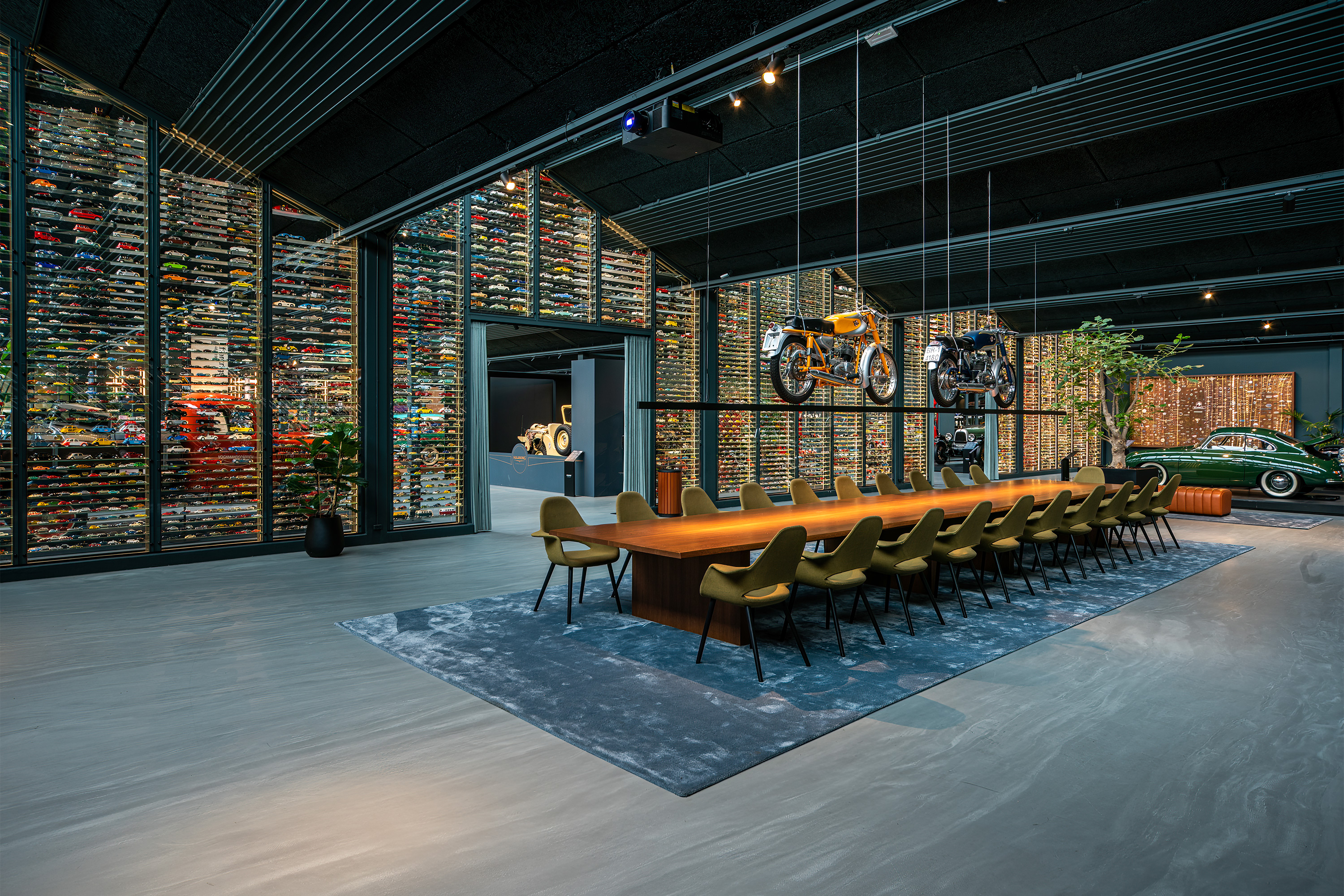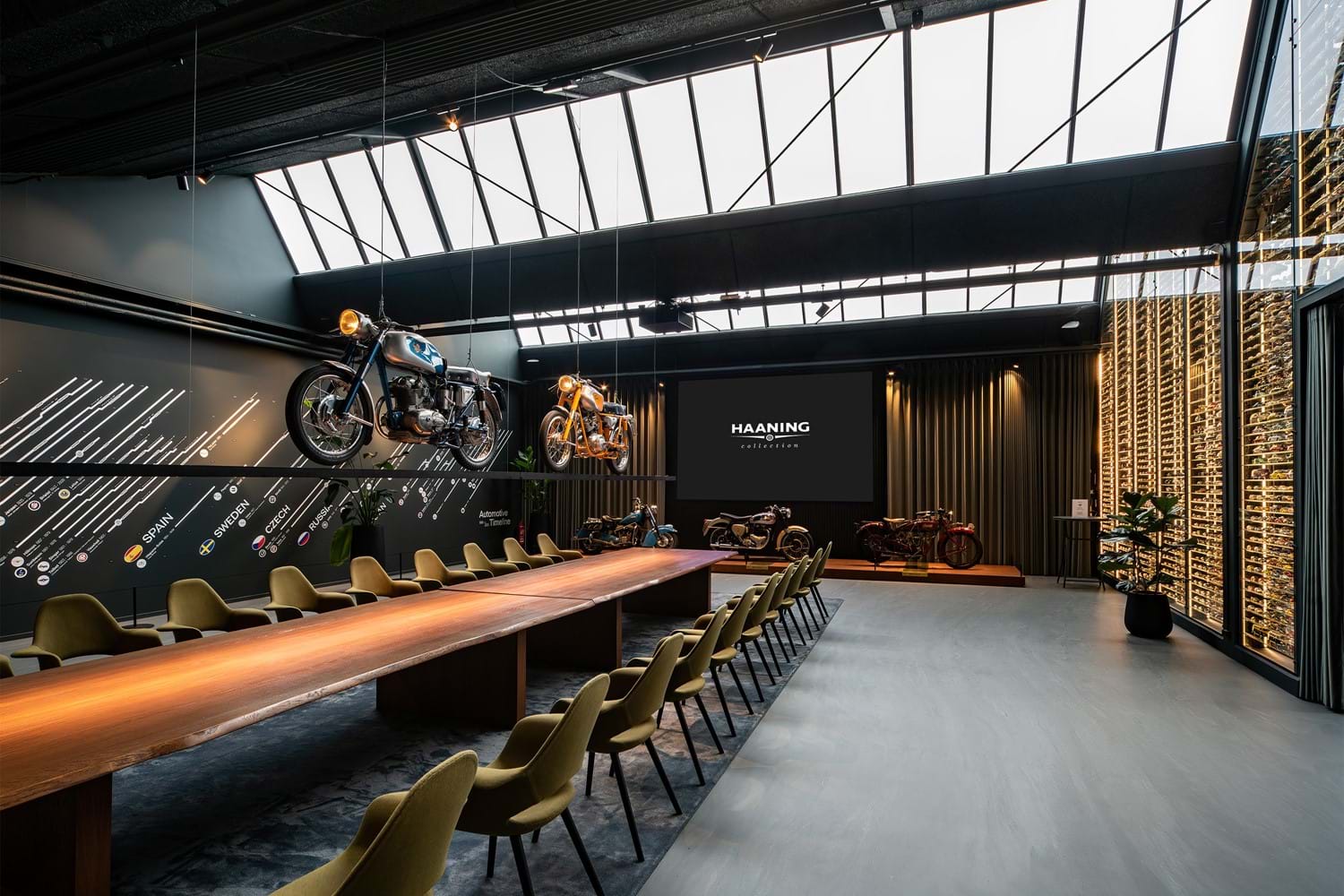 Midt i udstillingshallen er det muligt at afholde en konference med mange deltagere. Men det er Haaning Collections unikke mødelokale ”Stuen”, som tiltrækker sig mest opmærksomhed. Stuen adskilles fra bilsamlingen ad den føromtalte glasvæg med de mange modelbiler. En anden spektakulær ting ved Stuen ses over det lange konferencebord – fra loftet hænger 2 gamle flotte Ducati motorcykler.