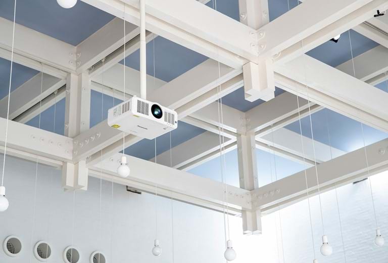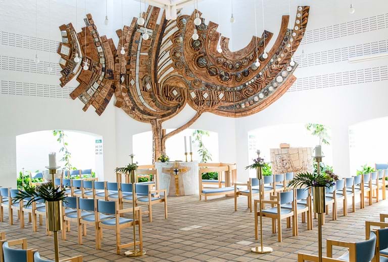 Helligåndskirken i Aarhus er bygget i 1984 og tegnet af Aarhus-arkitektfirmatet Stahl & Thomsen. Kirkerummet er fyldt med ovenlys fra vinduer rundt om kirken. Vi har leveret en streamingløsning med et kamera, der er placeret bagerst i kirken. Da der kommer meget lys udefra, har vi sat en række spots op i loftet. Spotsene gør, at man tydligere kan se præsten.