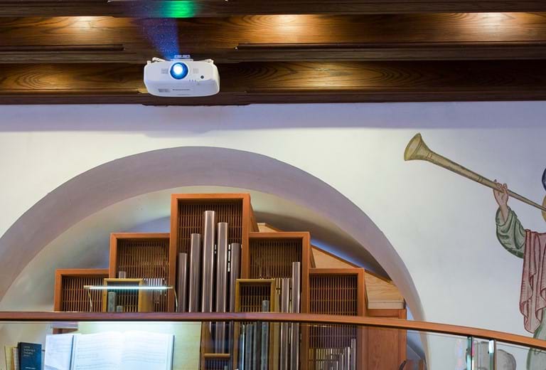 I Herning Kirke er der hele 3 projektorer installeret. Den største projektor er på 7.000 Ansilumen og skyder billedet på et motorlærred, der er monteret bagved korbuen. Det betyder, at når lærredet ikke er i brug, så er det skjult. De 2 mindre projektorer er på 5.800 Ansilumen og skyder billedet direkte på kirkevæggen.