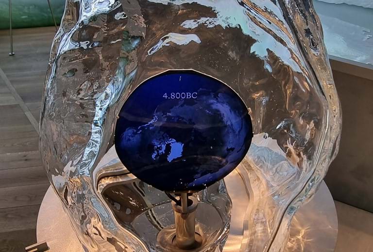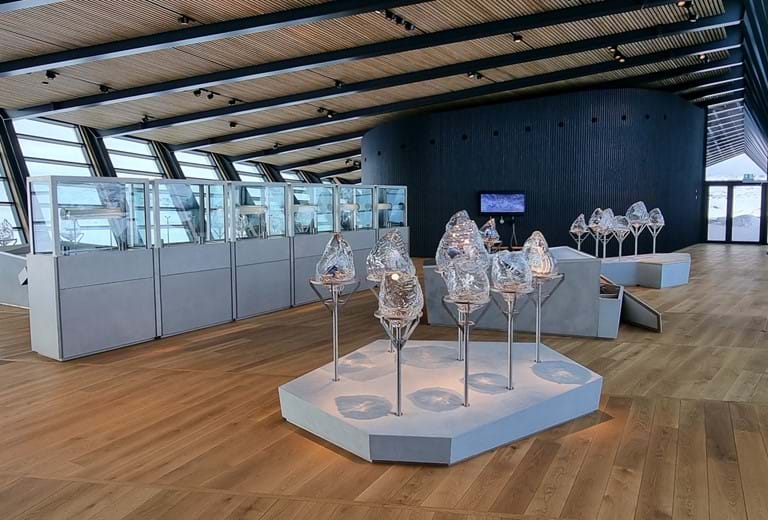 Udstillingen består også af 6 autentiske iskerner fra boringer hentet fra indlandsisen. Via touchskærme ved hver iskerne kan man blive klogere på kultur og klima fra i dag og tilbage til 124.000 år før vores tidsregning.