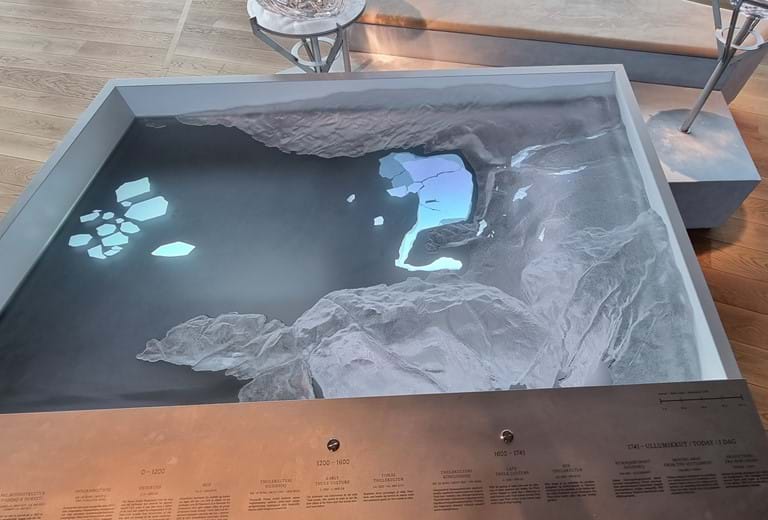 I den permanente udstilling 'Sermeq pillugu Oqaluttuaq – Fortællingen om is', kan man lære om isens livscyklus, det rige dyreliv ved Isfjorden og menneskets tilværelse her gennem tusinder af år.