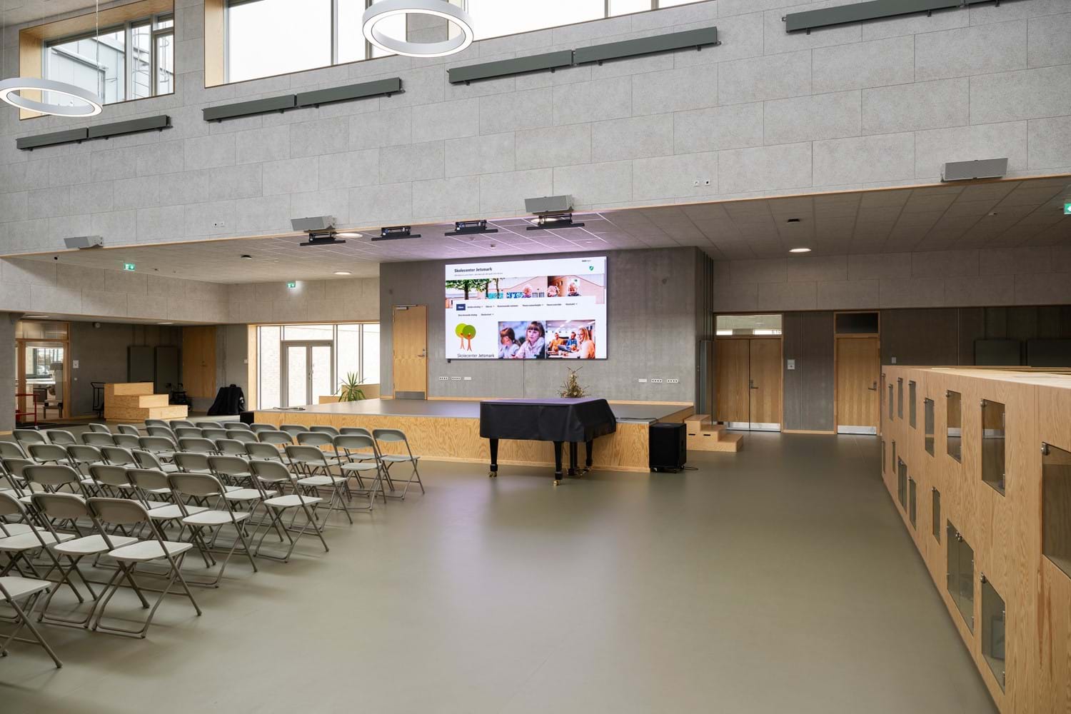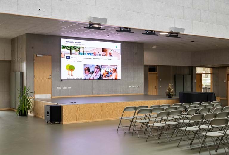 AV CENTER har været med i processen omkring det nye skolecenter fra de første tanker og tegninger blev udført, det har betydet, at AV-løsningerne er tænkt ind i byggeriet fra starten.