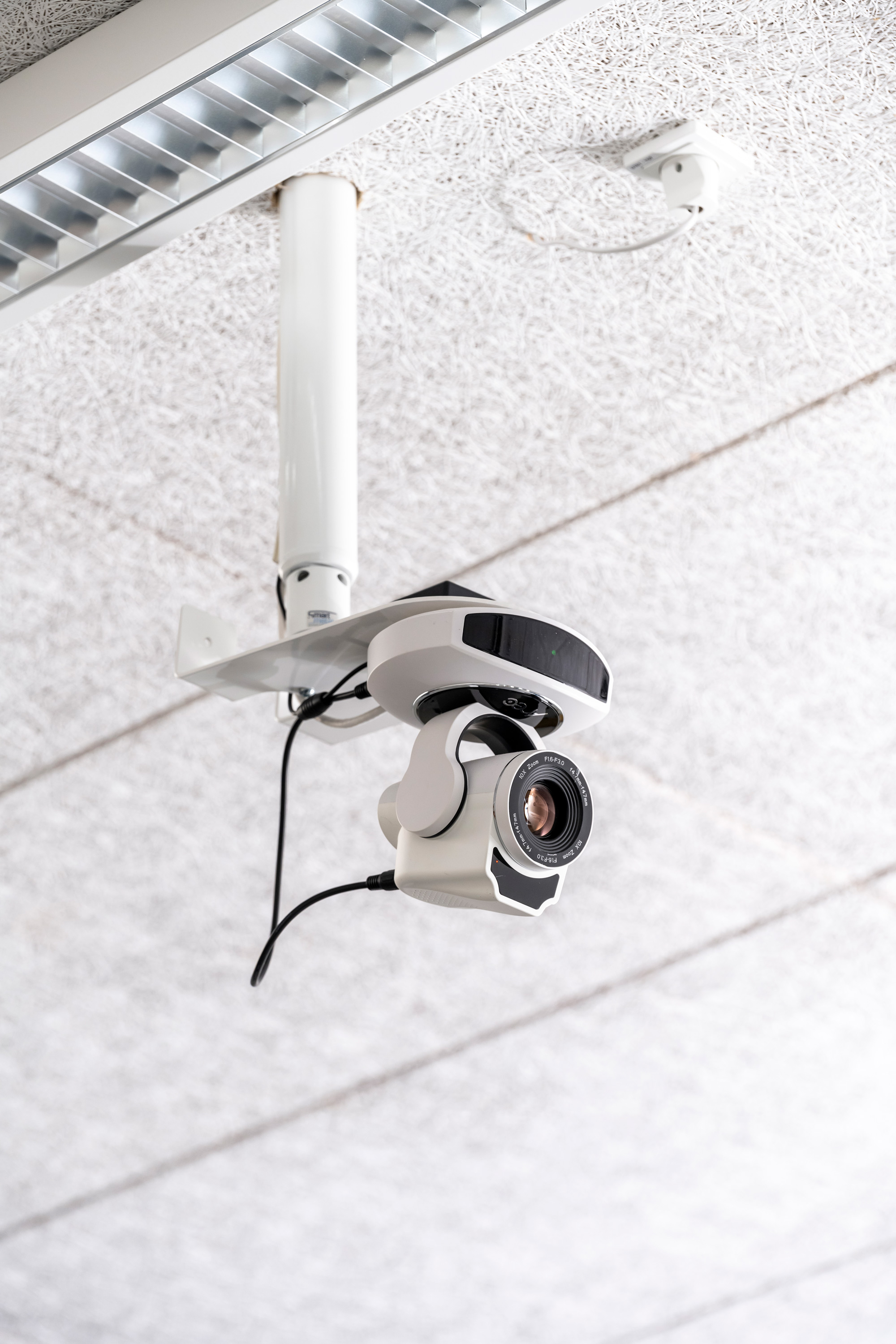 Da skoletjenestens lokale også bruges til at streame fra, er der i lokalet installeret 2 kameraer. Det ene kamera bruges til at filme oplægsholderen, mens det andet kamera bruges til at fokusere på det område, hvor man f.eks. dissekerer og viser close-up billeder af fisk mv. Al betjening af udstyret i skoletjenestens lokale sker fra et vægmonteret betjeningspanel.