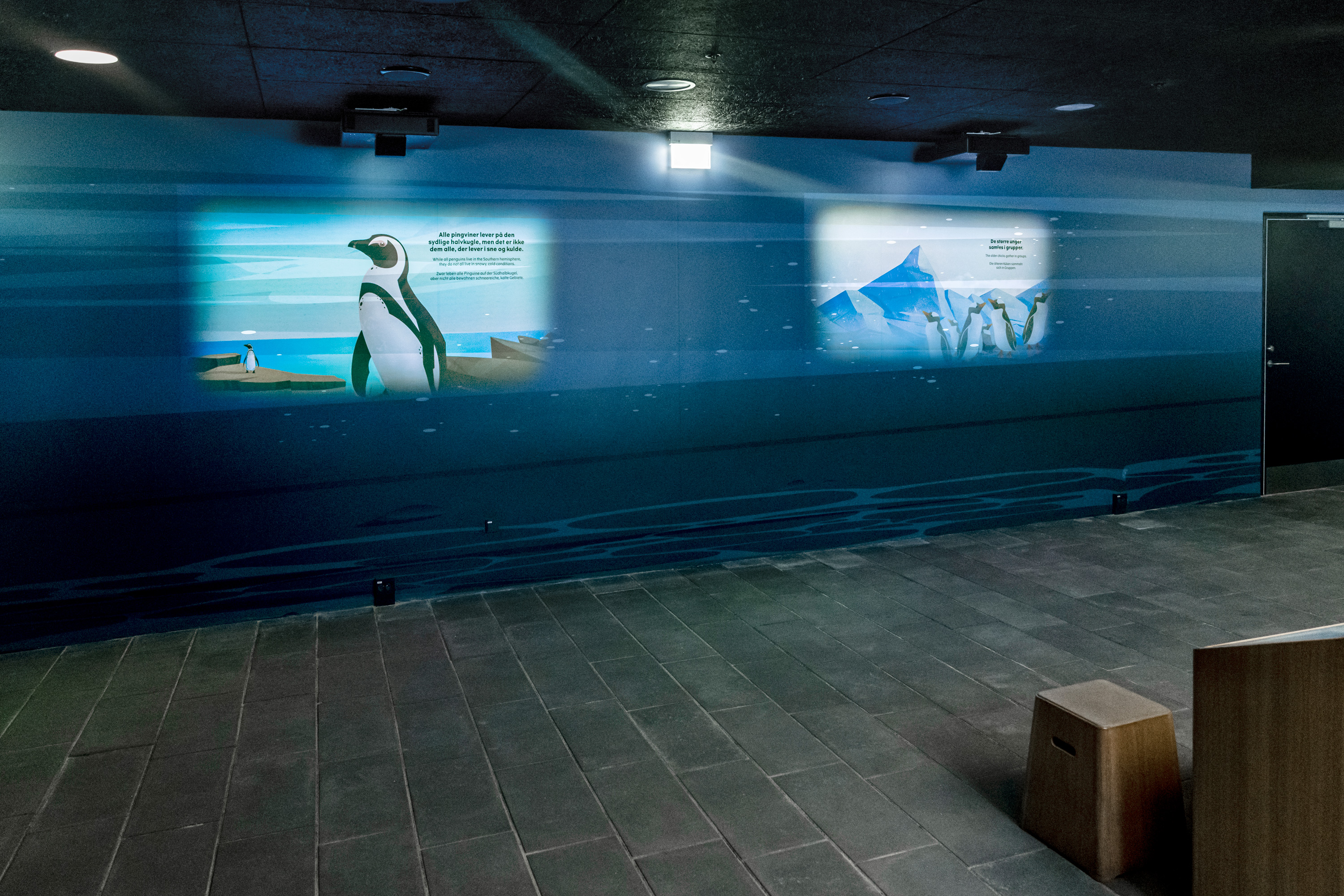 I underetagen er der i loftet installeret 10 loftshøjttalere, som afspiller pingvinlyde for at sætte den rette stemning.