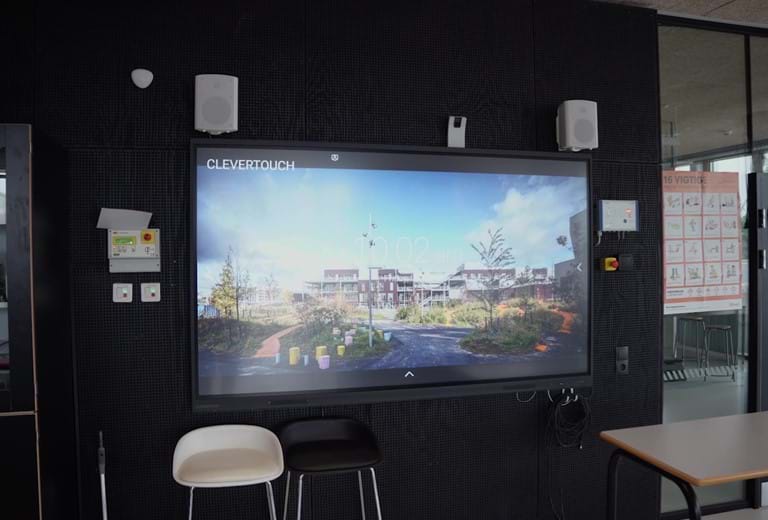 I alle undervisningslokaler er der installeret 86” touchskærme fra Clevertouch. Ydermere har Nærheden 12 lokaler indrettet, så der er mulighed for hybrid fjernundervisning. I disse lokaler er der udover touchskærme også installeret PTZ kameraer og loftsmikrofon fra Shure.