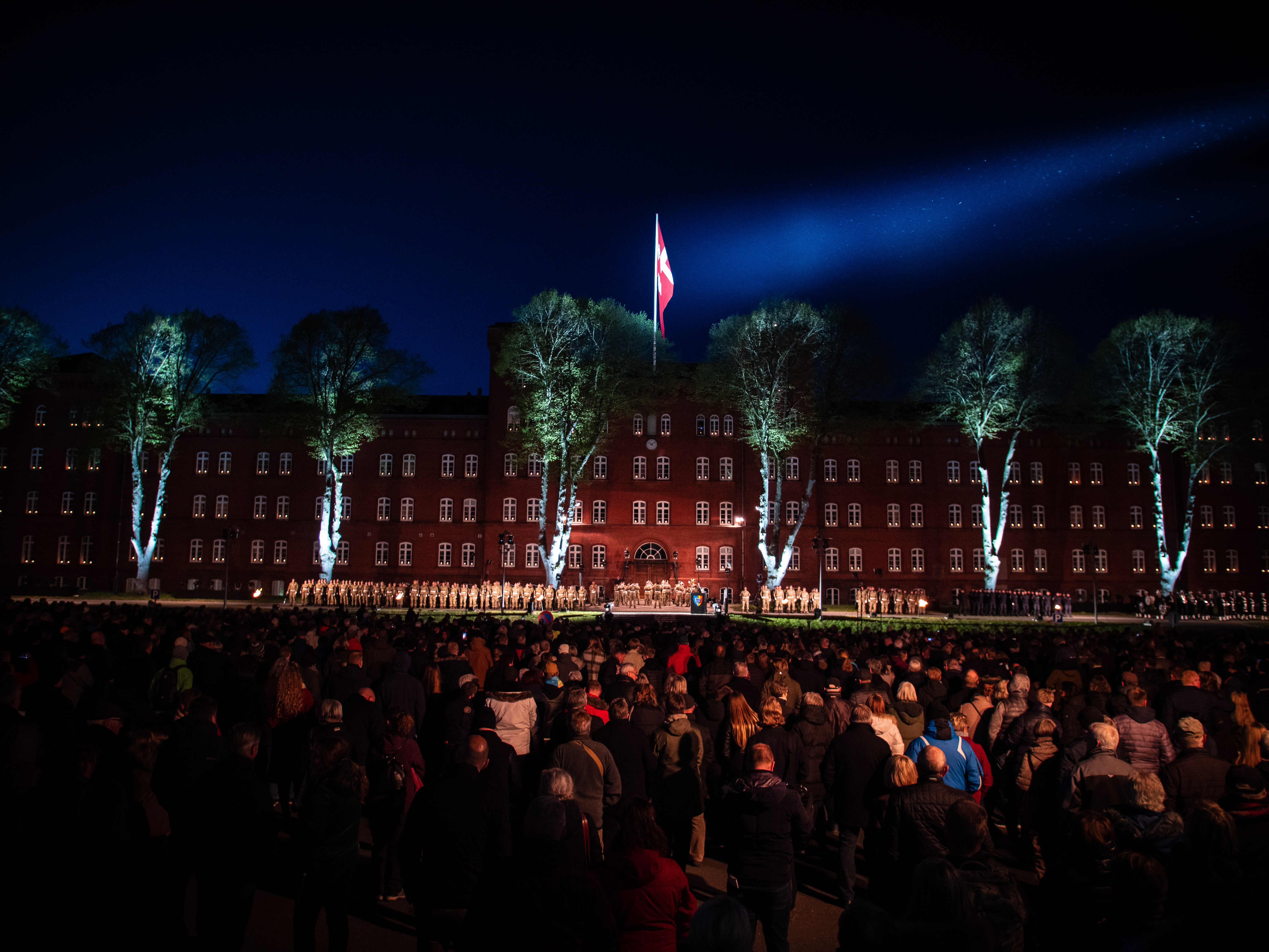 En central og markant del af showet var den 120 meter lange og 30 meter høje kasernebygning, hvor der i dagens anledning var sat levende lys i alle vinduer og som en del af showet blev bygningen naturligvis også belyst. Den omfattende lyspakke bestod af mere end 190 lamper, hvoraf alle lamper, der var placeret udendørs, naturligvis var IP66 godkendte. Lyspakken bestod af: