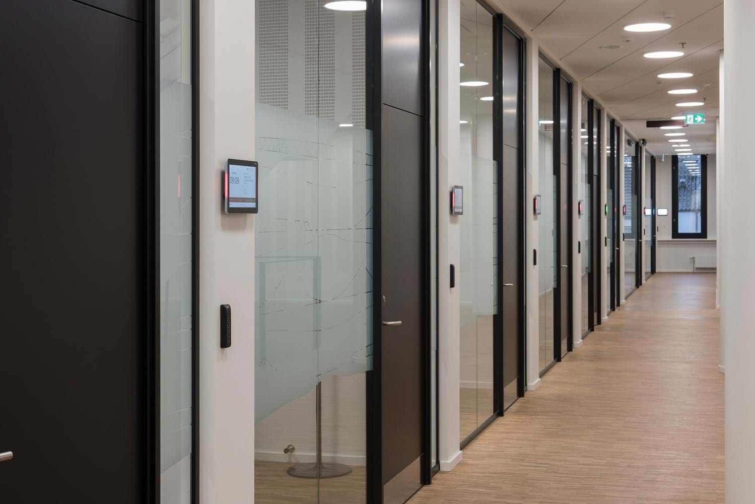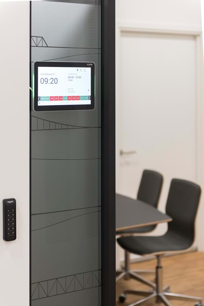 Udenfor alle mødelokaler er der opsat møderumsskærme. På møderumsskærmen kan men nemt og hurtigt danne sig overblik over, hvem der har booket lokalet og hvor længe det er booket, samtidigt indikeres det med rødt eller grønt lys om lokalet er optaget eller ledigt. Møderumsskærmene er koblet op på rådhusets kalendersystem, og derfor altid opdateret. For ad hoc møder mv. er det muligt at booke lokalerne direkte på skærmen.