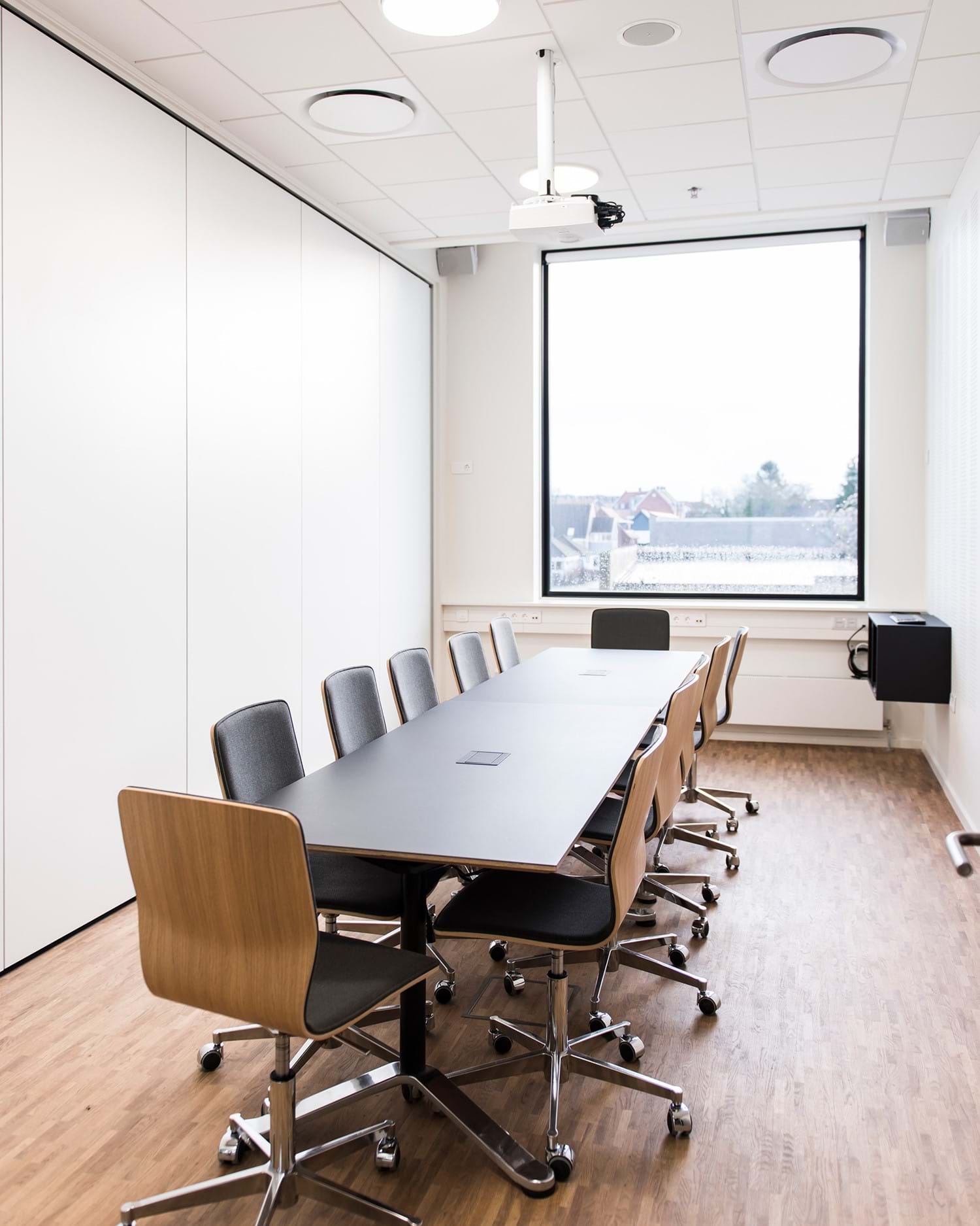Skal man til møde på rådhuset fortsætter man op af den flotte trappe til førstesalen, der er indrettet med blandt andet byrådssal og mødelokaler i forskellige størrelser. I de mindre flexrum og større samtalerum er der installeret Sony fladskærme. I de større mødelokaler er der installeret Optoma Full HD projektorer.