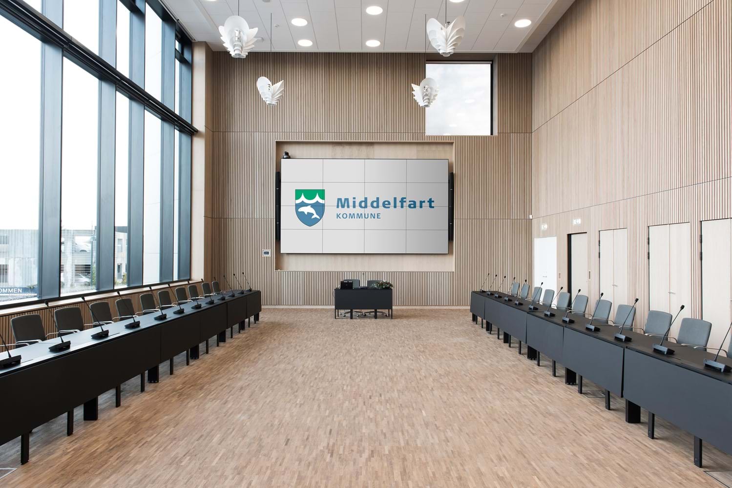 Vi er glade for de løsninger, vi har valgt til vores rådhus – og den service, AV CENTER har leveret i forbindelse med samarbejdet.Henrik Mott Frandsen Projektchef ifm. opførelsen af Middelfart Rådhus