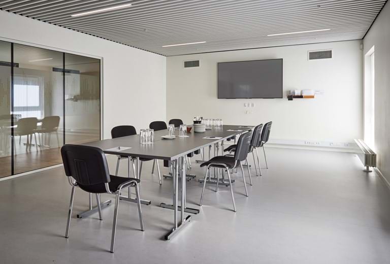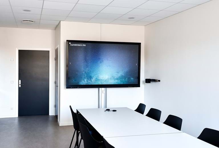 I de større mødelokaler er der installeret projektorer og lærreder. I de mindre mødelokaler er der installeret 75” skærme. Desuden er der mødelokaler, hvor der er installeret interaktive Clevertouch touchskærme, med integreret Clevershare til trådløs deling af indhold fra PC til touchskærm. I mødelokalerne er der installeret JBL lofthøjttalere og Neets betjeningspaneler for nem og hurtig betjening af AV udstyret.