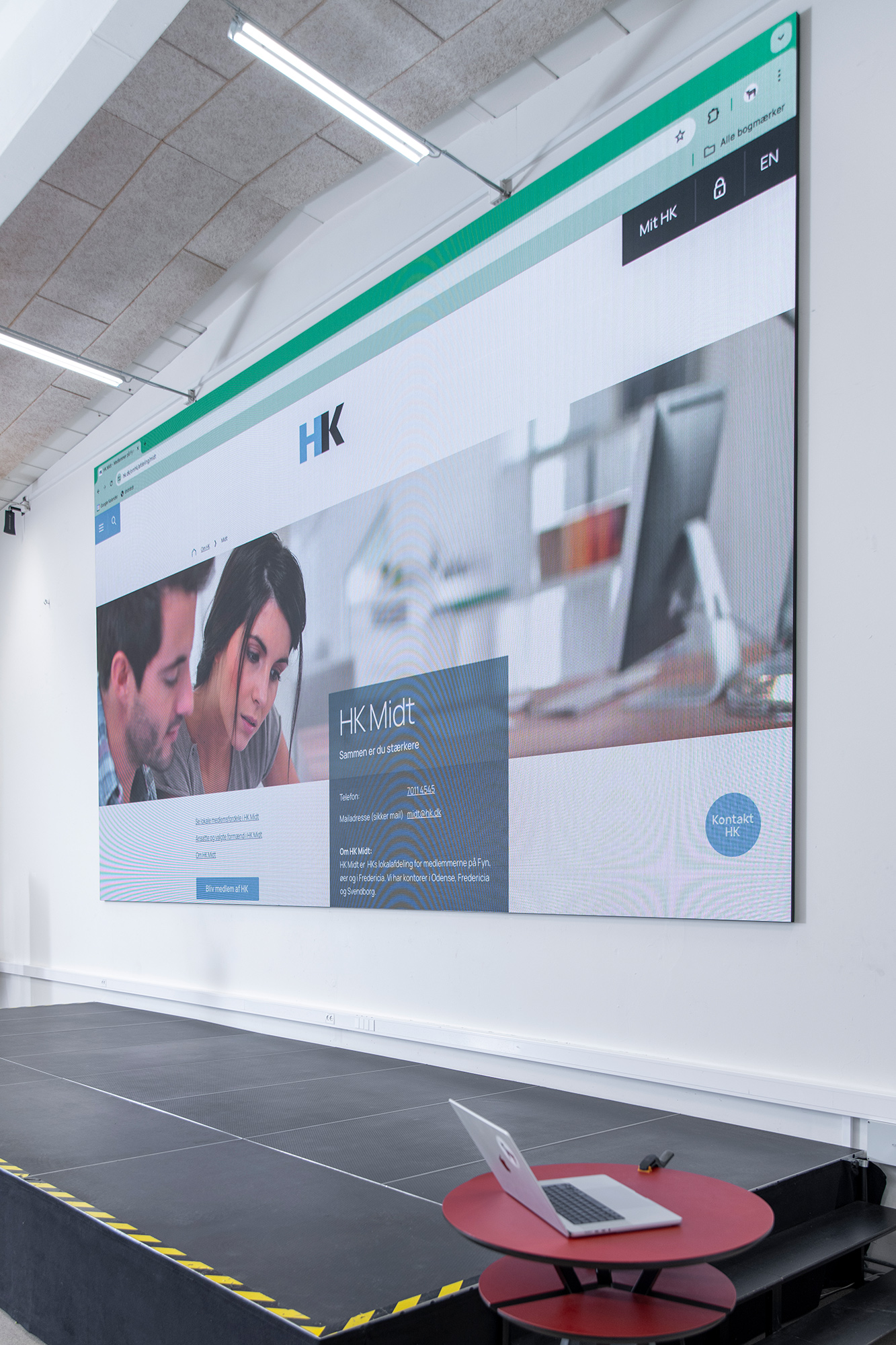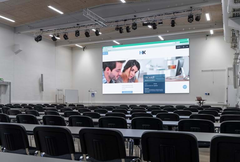 Vi har gennem mange år været leverandør af AV-løsningerne i de forskellige møde- og konferencelokaler. Derfor var det også naturligt, at AV CENTER blev valgt som leverandør, da lampeprojektoren i den store konferencesal Neptun skulle udskiftes til en ny 7,5 meter bred LED-storskærm.