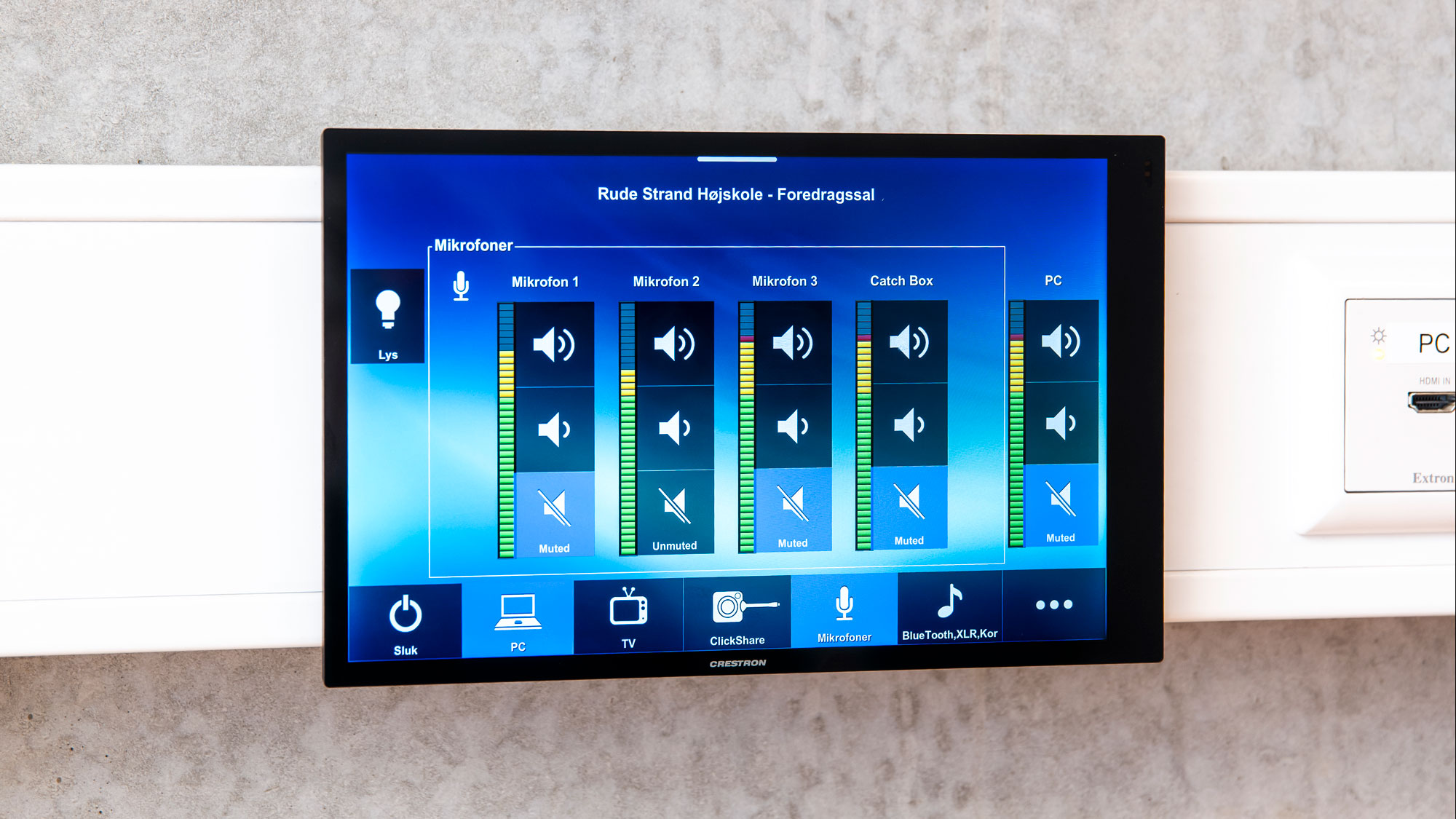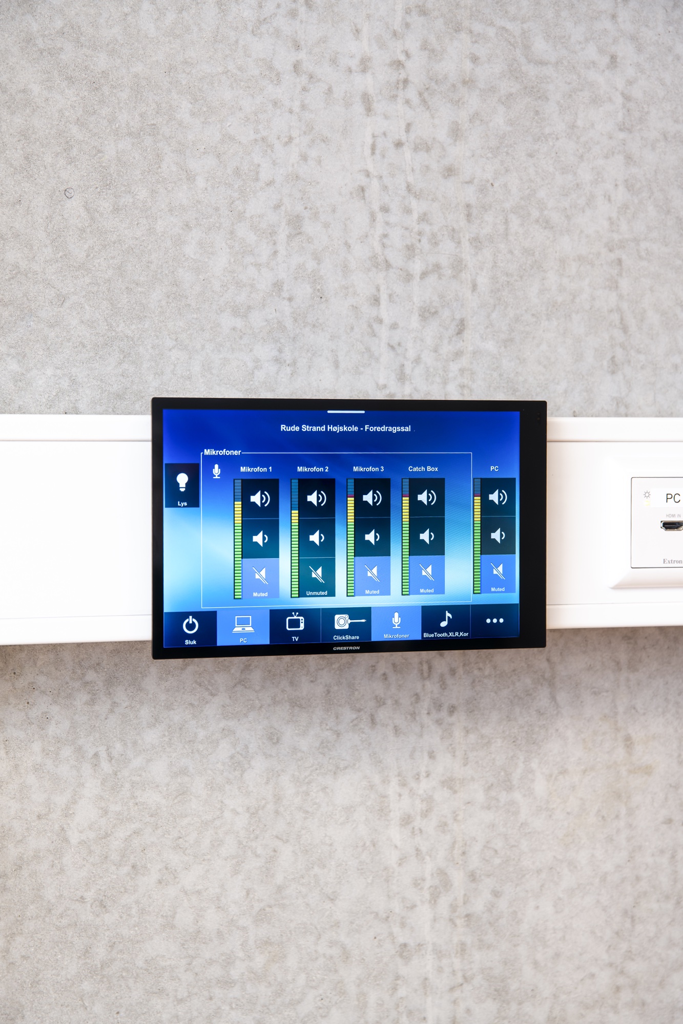 Al teknik i den nye multisal styres nemt fra et vægmonteret Crestron betjeningspanel.