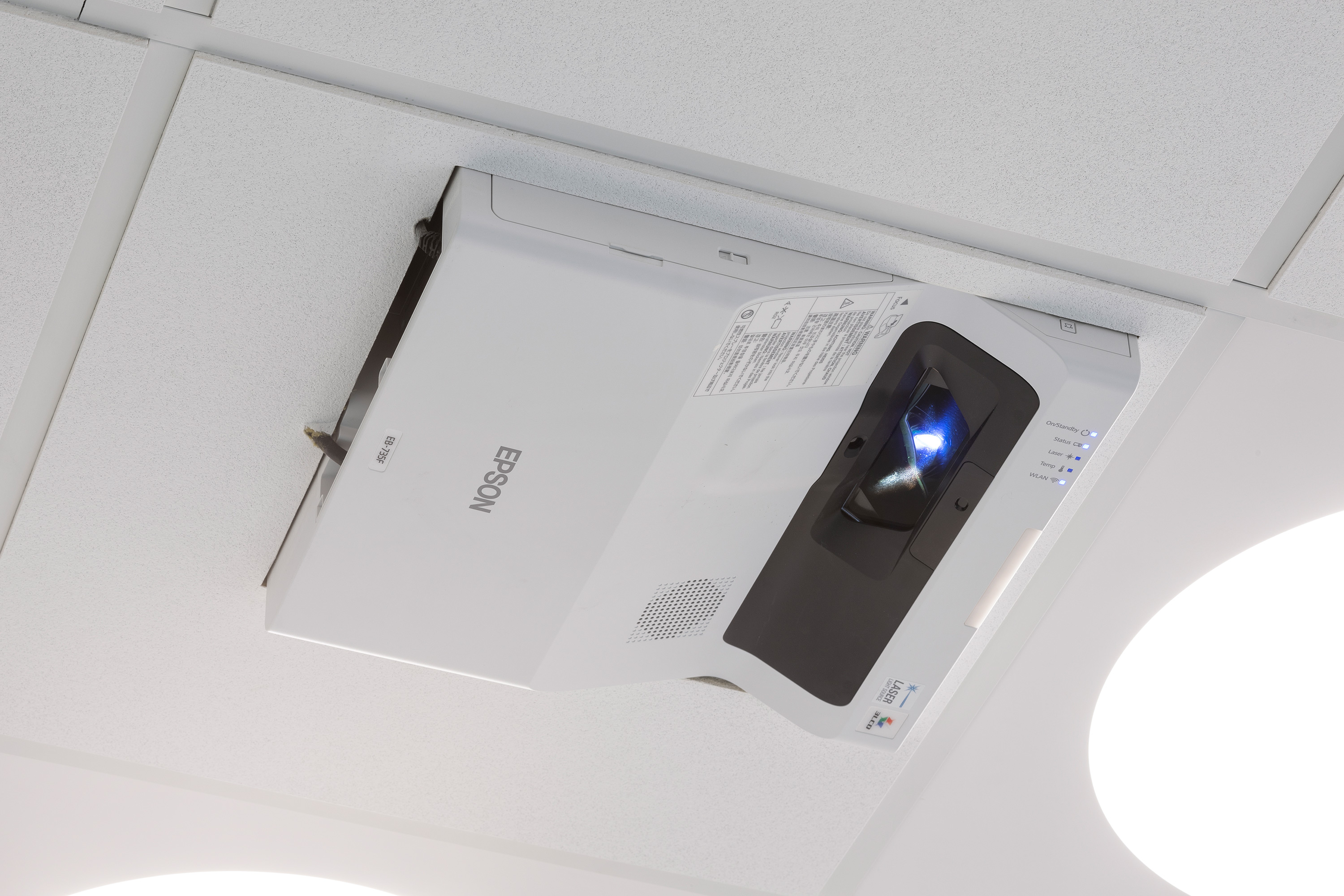 Via et Cue touch betjeningspanel kan der vælges mellem fire forskellige sanseoplevelser – drømme, hjem, ro og urkraft. Når et scenarie vælges, ændres sansefødens lys og der kommer lyd i lofthøjttalerne og levende billeder/video vises på væggene via 3 stk. Epson Ultra Short Throw projektorer.
