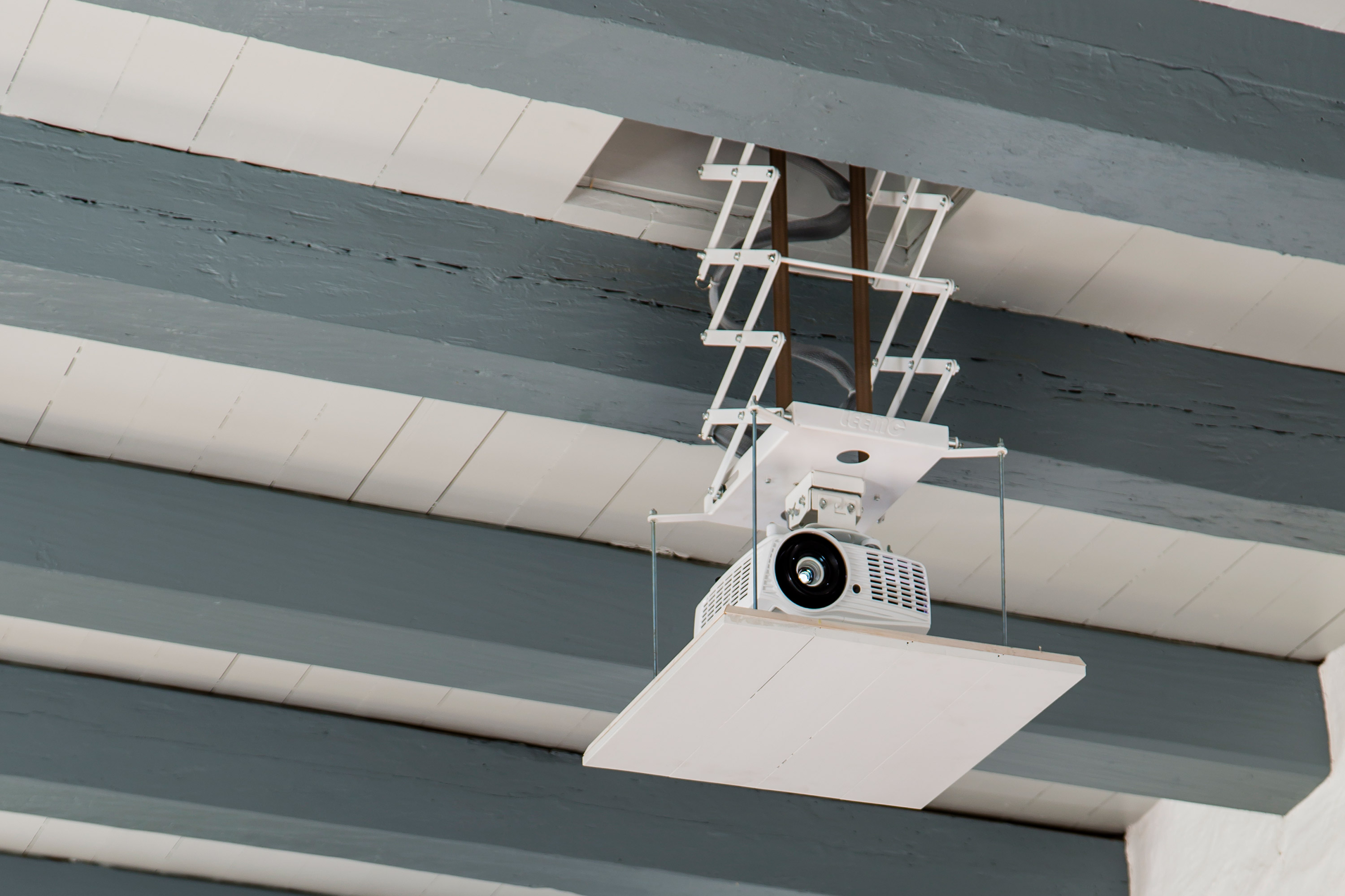 Når man første gang kommer ind i kirken, er det eneste synlige AV udstyr de hvide BOSE MA12 højttalere, der dækker kirkerummet og sideskibet med lyd. Men, med et enkelt tryk på Neets betjeningspanelet kører der en Full HD projektor ned fra loftet i en lift og et motoriseret lærred kører ned fra en placering skjult over loftet.