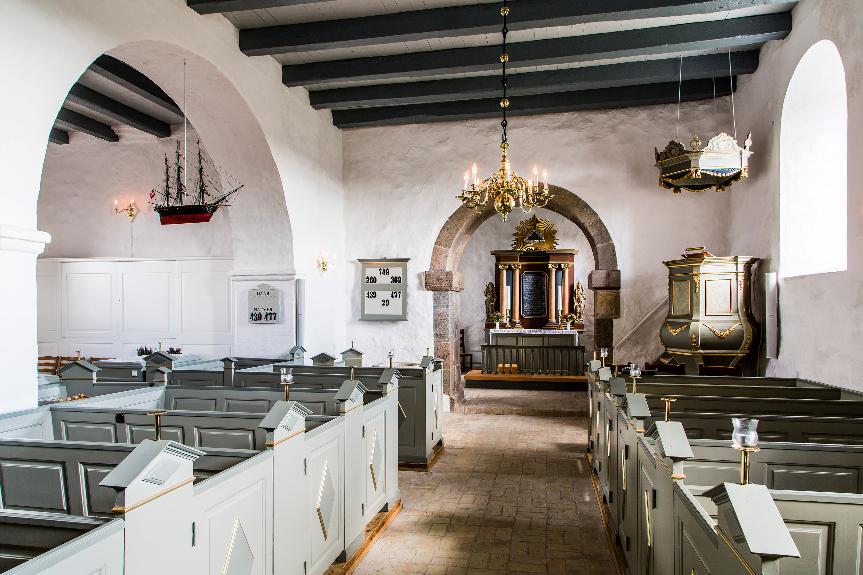 Da kirken har mange formål var det et ønske, at der i sideskibet blev installeret en skærmløsning diskret placeret i et specialfremstillet skab, så skærmen er skjult, når den ikke er i brug. Skærmen kan vise det samme indhold som på projektoren i kirkerummet, men også vise separat indhold.