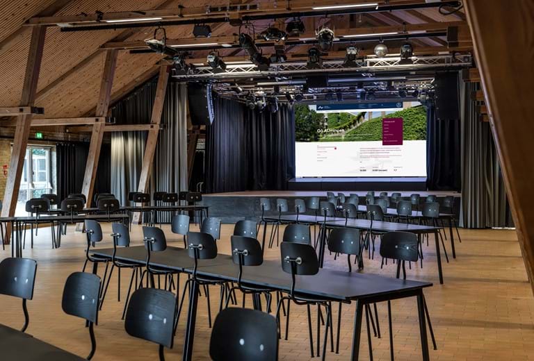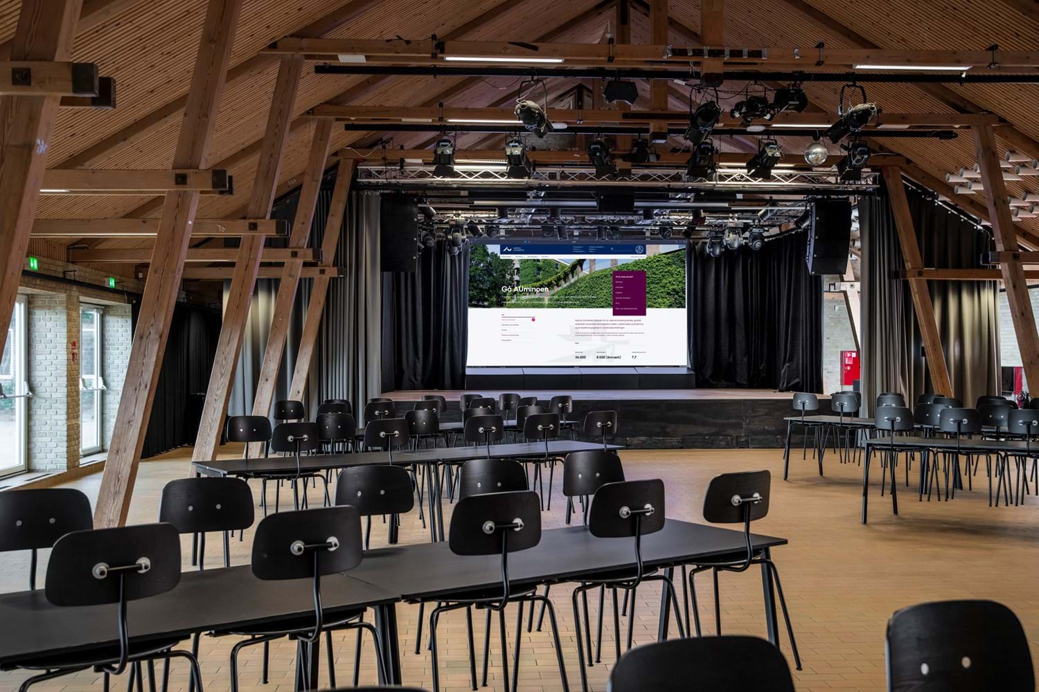 For at forbedre oplevelsen for gæsterne og optimere de visuelle muligheder i salen har AV CENTER leveret og installeret en 4,80 meter bred LED-skærm. Den nye LED-løsning erstatter en ældre bagprojektionsløsning.