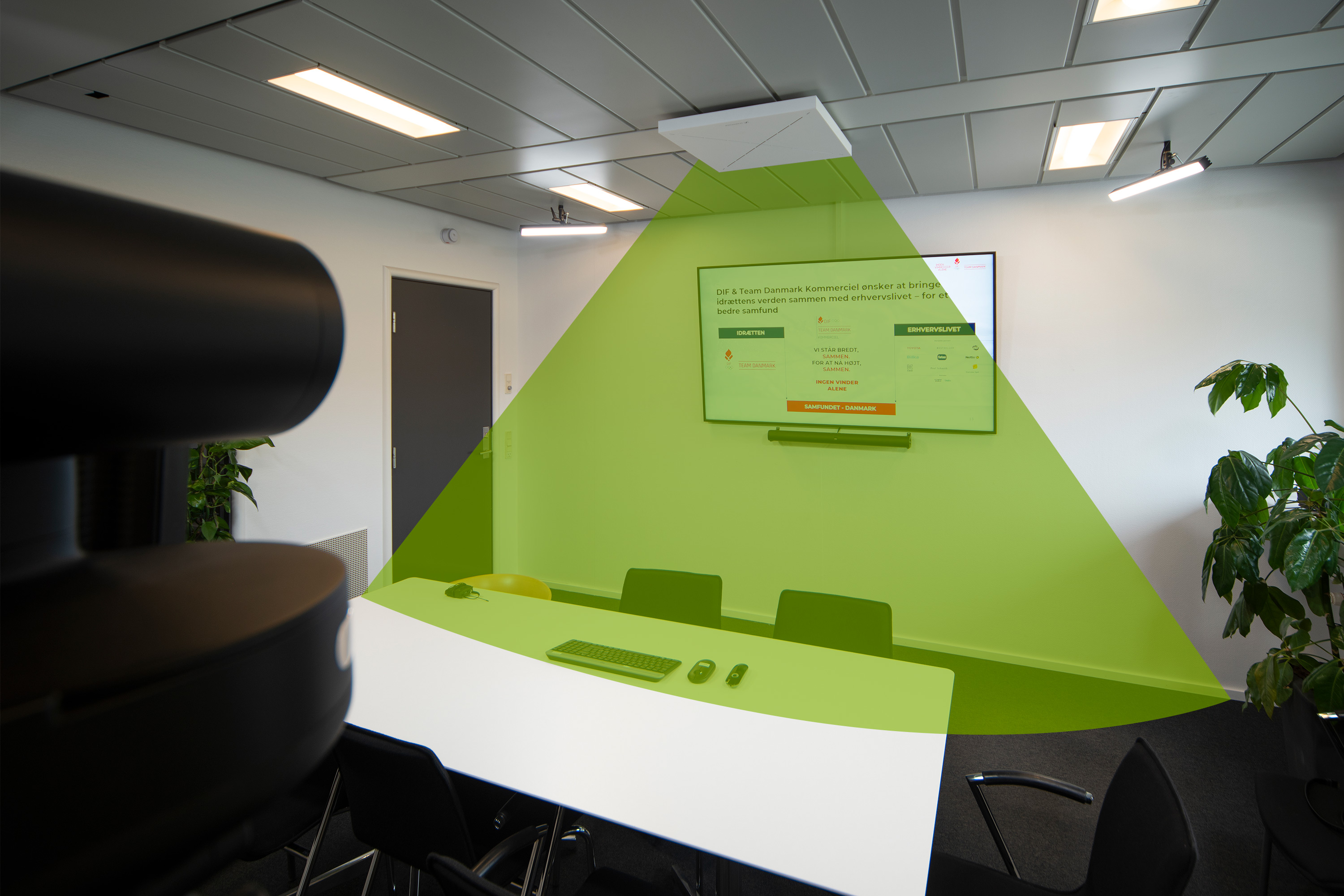 Loftsmikrofonen kan indstilles til at dække et bestemt område.