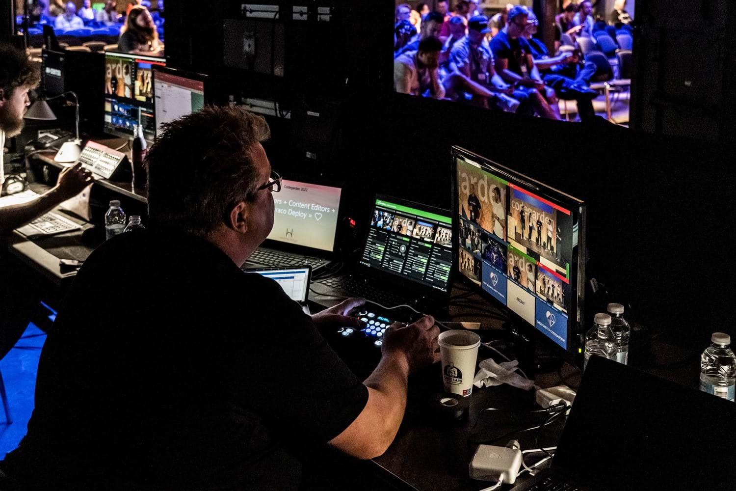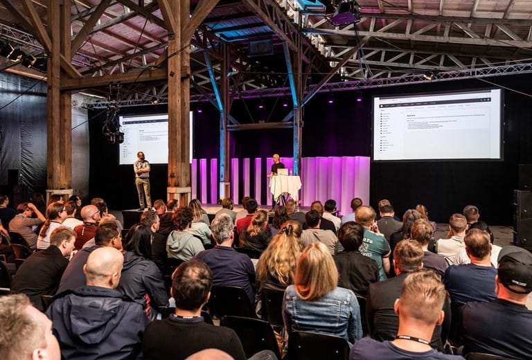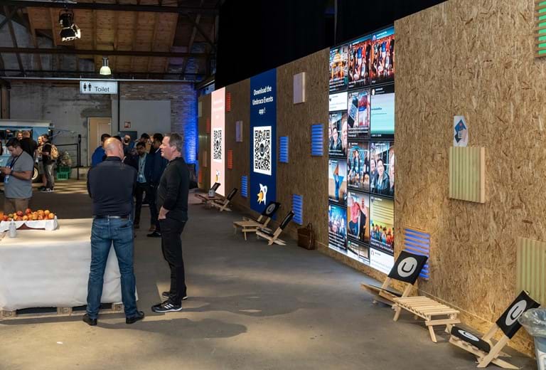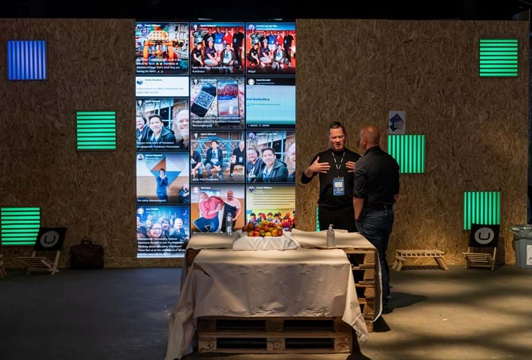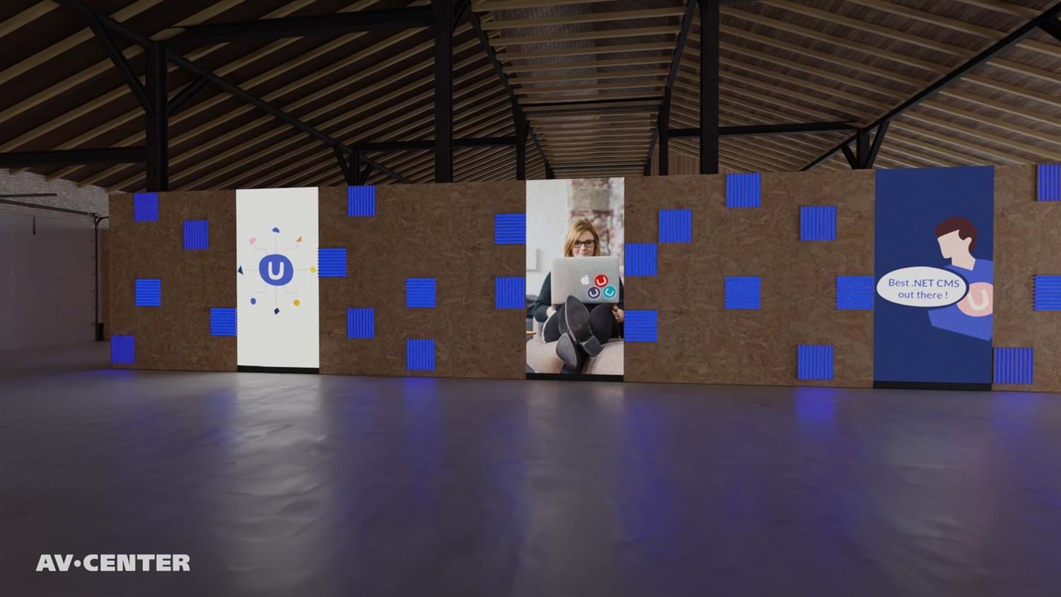 Vores udlejningsafdeling har gennem mange år været samarbejdspartner og leverandør af den tekniske løsning. I samarbejde med Umbraco lavede vores kreative afdeling scenografi og indretning af de 3 haller konferencen.