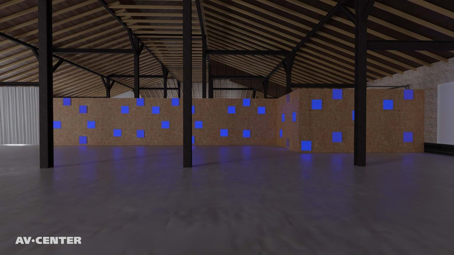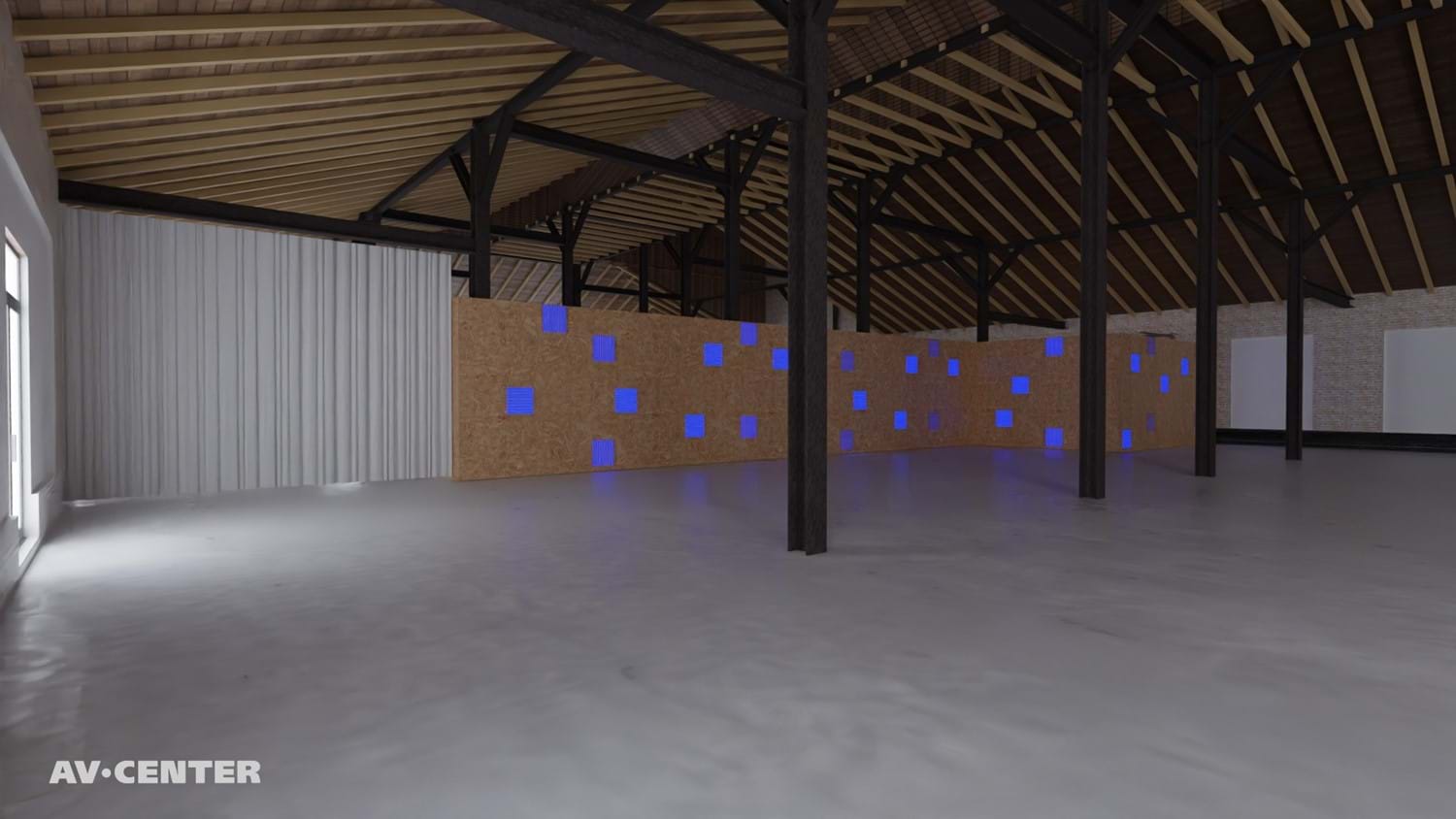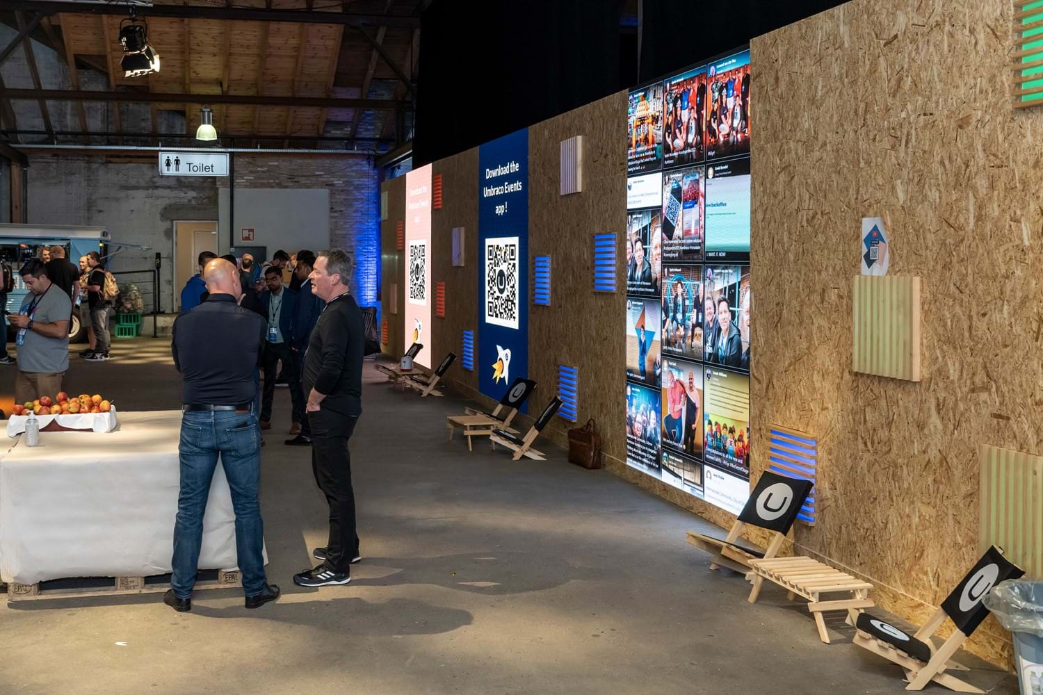 De rå haller blev inddækket med sort molton stof og OSB-plader. For at skabe stemning blev der indbygget lys i OSB-pladerne, så de kunne skifte farve, andre steder blev der indbygget LED-skærme som viste praktisk information mv. I den store sal, hvor blandet det traditionsrige ”Umbraco Awards” og ”Package Awards” blev afholdt, havde vi lavet en bagprojektionsløsning, hvor lærredet var bygget ind i OSB-plader.