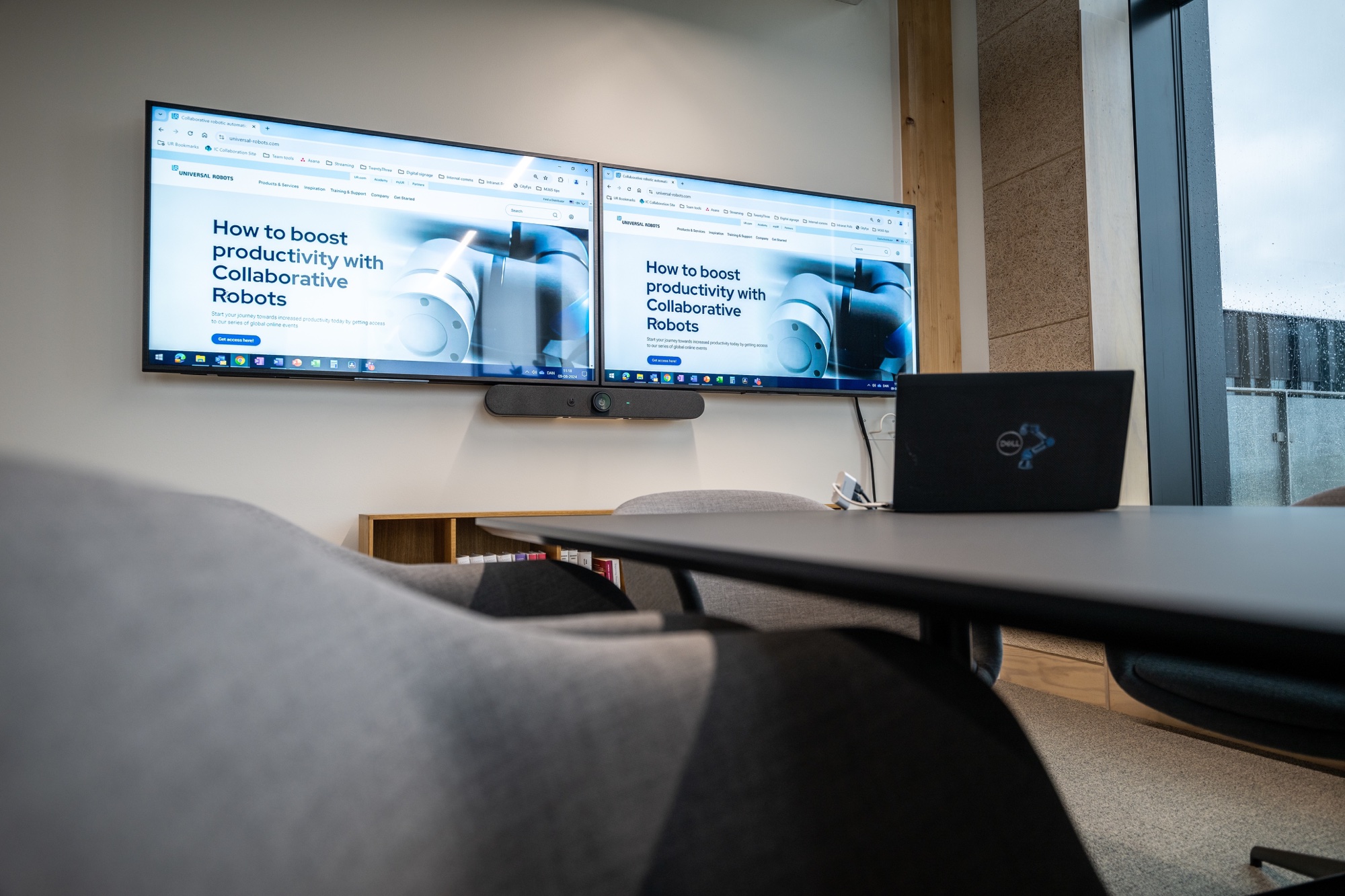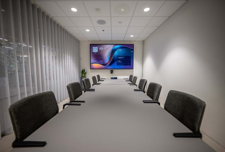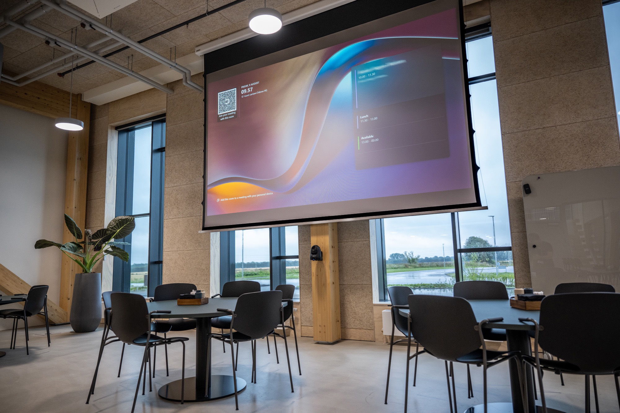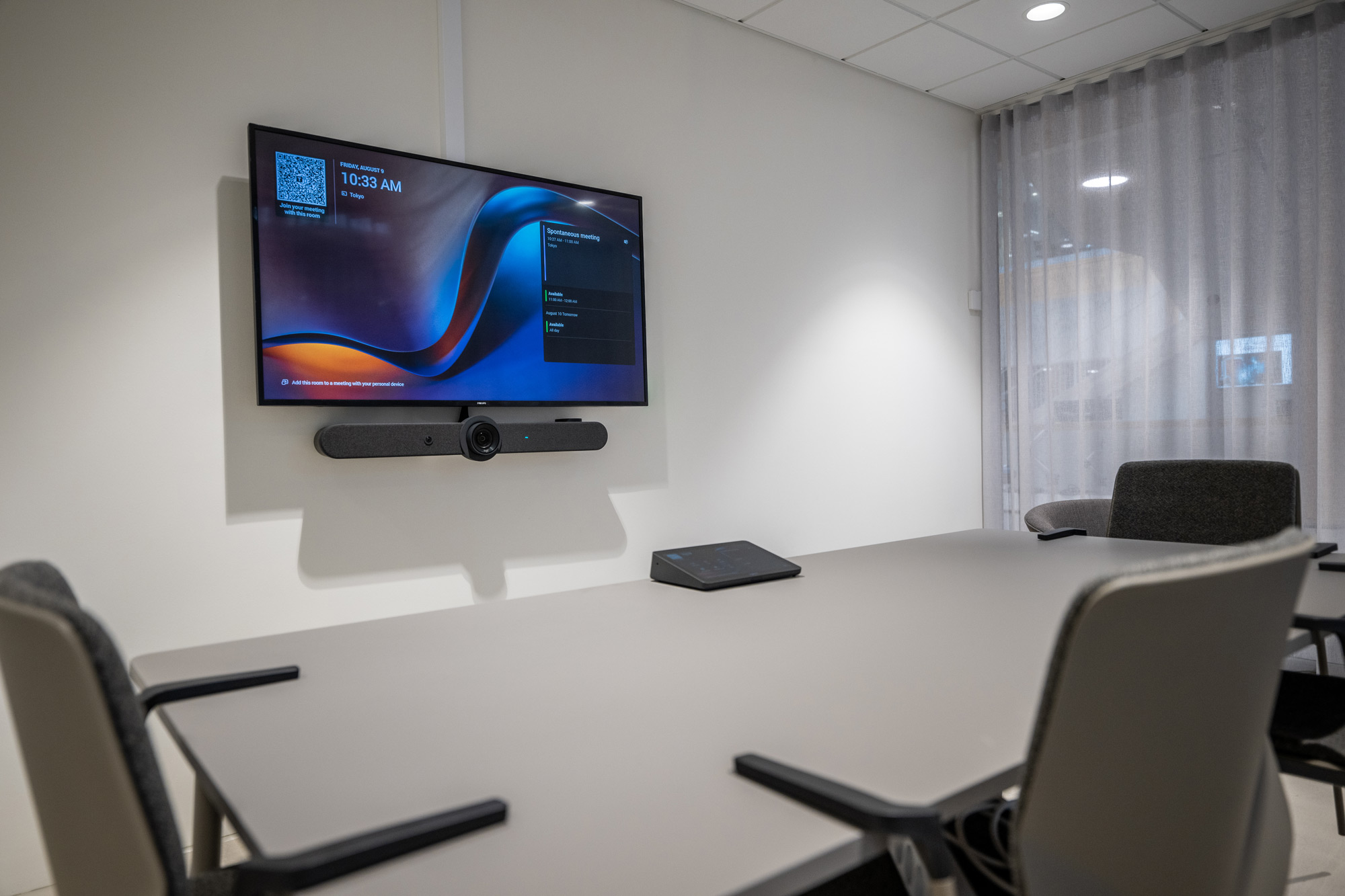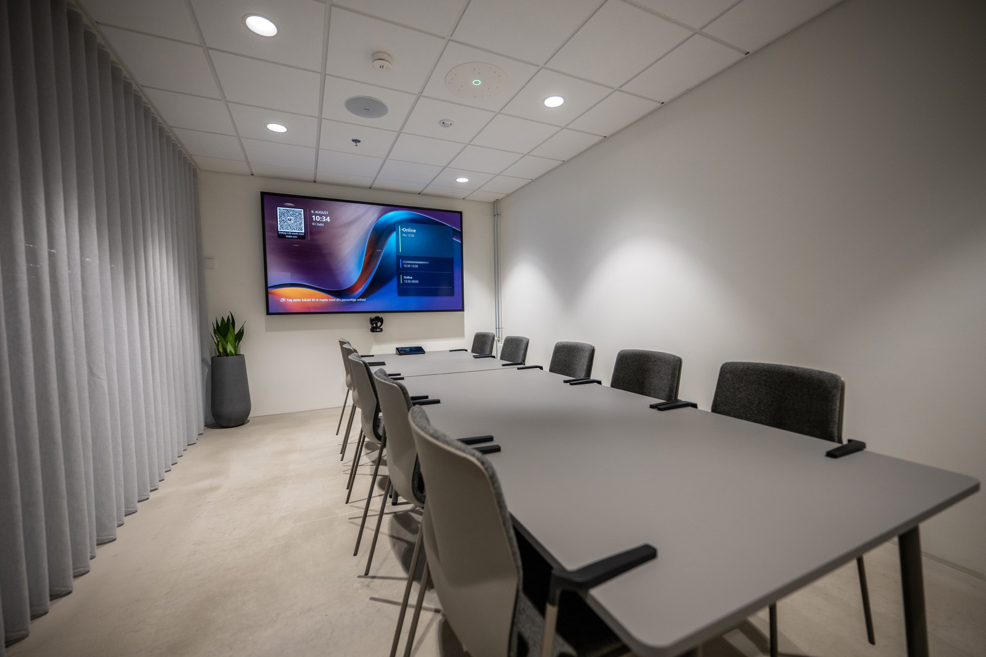 Alle løsninger til online videomøder i det nye domicil er fra Logitech. Valget af Logitech blev truffet med fokus på brugervenlighed, da ens løsninger i samtlige mødelokaler skaber en nem og ensartet tilgang til videomøder. Dette sikrer, at alle brugere har samme oplevelse uanset hvilket mødelokale, de befinder sig i, hvilket gør hverdagen mere effektiv og enkel. Foran hvert mødelokale er der monteret mødebookingskærme, der viser info om mødelokalets brug og man kan nemt på afstand se om skærmen lyser grønt, for ledigt lokale, eller rødt, for optaget lokale.