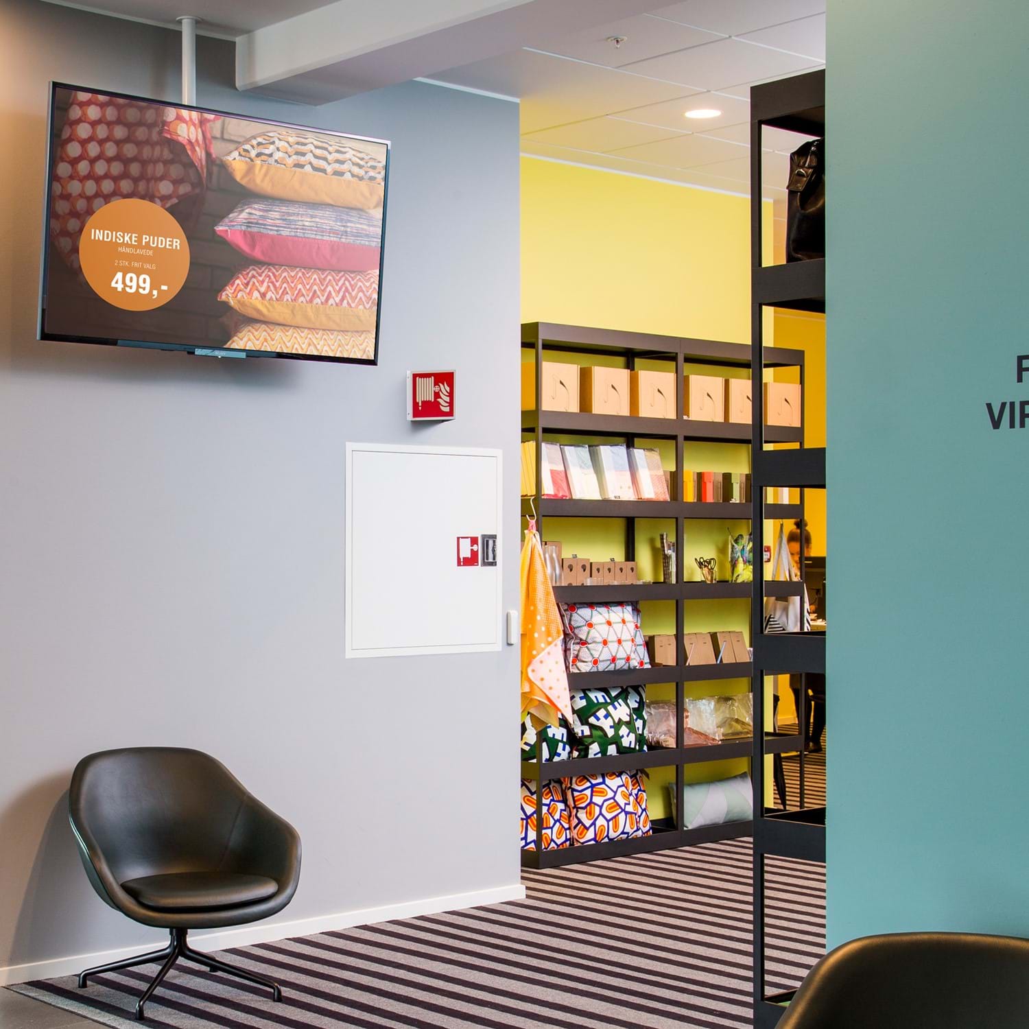 Forbrugerundersøgelser har vist, at over halvdelen af alle købsbeslutninger bliver truffet i butikken. En effektiv måde, hvorpå købsbeslutningen kan påvirkes, er ved hjælp af digitale skilte placeret rundt omkring i butikken. Med digitale skilte får du mulighed for at kombinere tekst, billede, grafik, PowerPoint og video, hvilket giver dig en lang række muligheder for blandt andet at genbruge eksisterende reklamemateriale. Du har også mulighed for at implementere reklamemateriale fra dine leverandører.