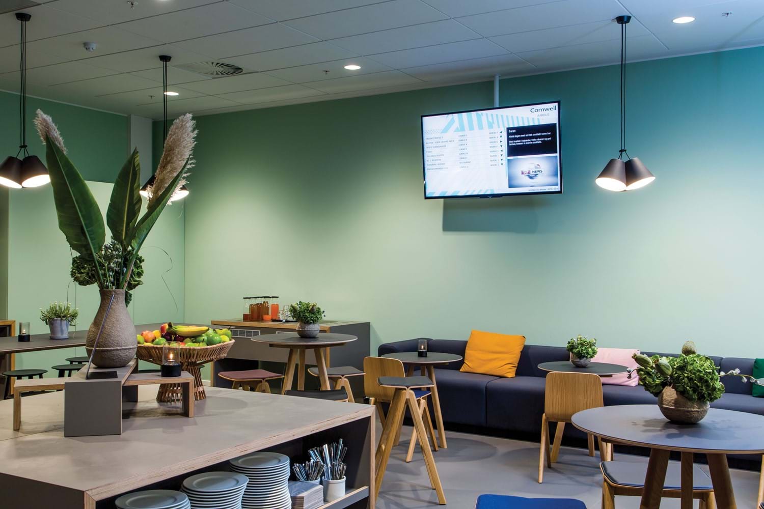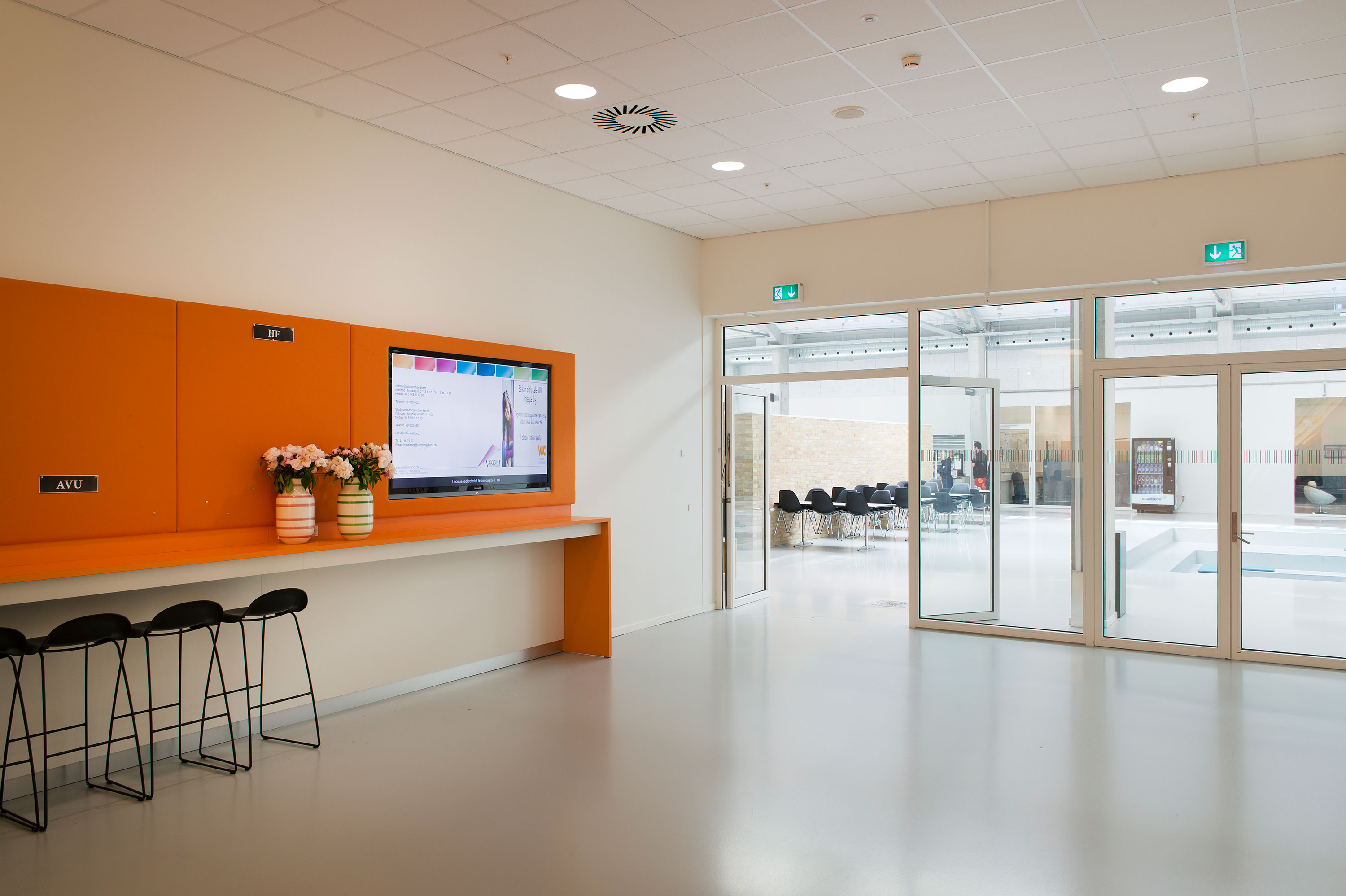 Med infoskærme får du mulighed for at kommunikere direkte med ansatte, gæster, kursister og andre, der har sin gang i bygningen. Du bestemmer selv layout og hvilket indhold, der skal vises på skærmene. Du kan vise internt indhold i kantinen og på gangarealer, og eksternt indhold der hvor gæster mv. befinder sig.