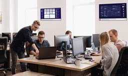Med mødebookingskærme/møderumsskærme placeret uden for dine mødelokaler kan ansatte booke lokaler og se status på igangværende møder direkte på skærmen. Møderumsskærmene er forbundet med dit booking- og kalendersystem og er derfor altid opdateret. Hvis mødelokalets tekniske udstyr er i stykker, kan du fejlmelde direkte på skærmen, og dit tekniske personale vil blive notificeret via en e-mail.