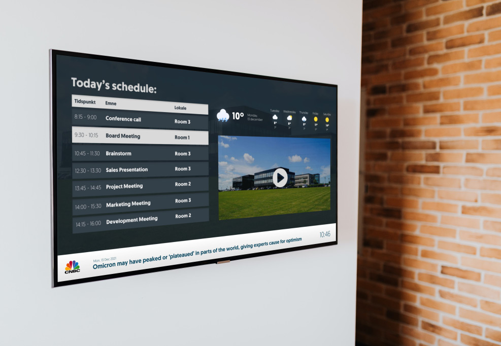 Det betyder, at du nemt kan få vist en oversigt over møder, fødselsdage, KPI’er eller lignende på dine infoskærme.