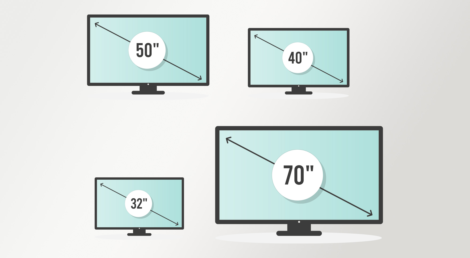 Når man måler skærme, gøres det fra hjørnet i den ene side, og diagonalt til hjørnet i modsatte side, og angives oftest i tommer. Det ved de fleste godt, men det kan derimod godt være lidt svært lige hurtigt at omsætte dette til centimeter i højde og bredde. Derfor har vi opsat et skema med nogle af de mest gængse skærmstørrelser, så du nemt kan få en ide om, hvor meget en specifik skærmstørrelse reelt vil fylde på en væg.