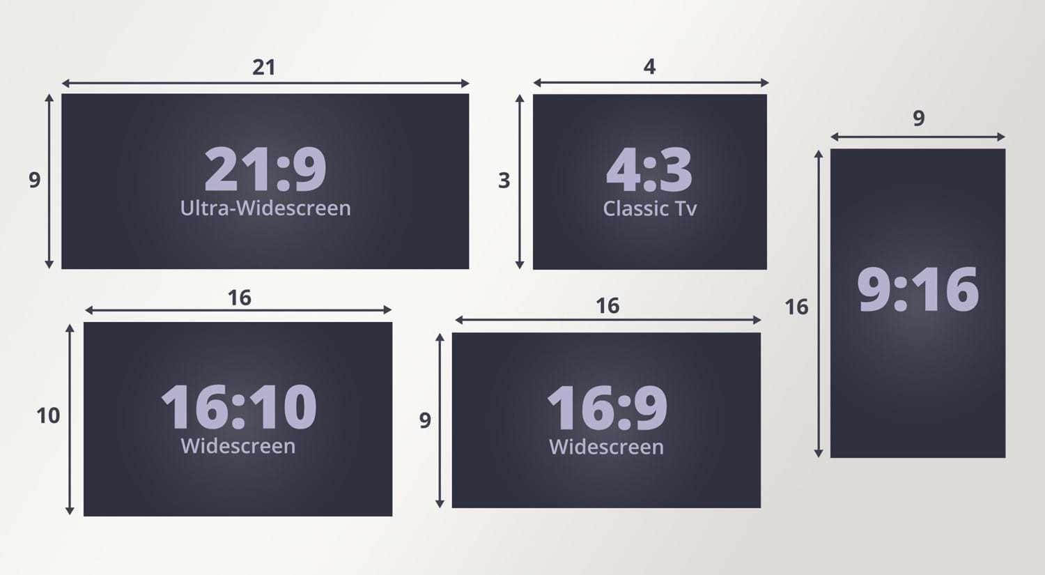 I dag er det mest klassiske skærmformat 16:9. Altså 16 dele i bredden og 9 dele i højden. Tidligere var 4:3 et udbredt format, men er langsomt forsvundet mere og mere.