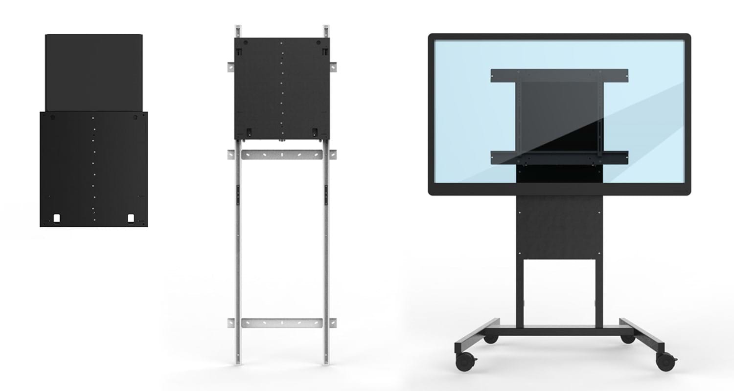 BalanceBox fås i forskellige udgaver. Du kan bl.a. få den til vægophængning, med gulvstøtte (til vægge hvor skærmens vægt er for stor en belastning) eller som mobilstand, som gør det muligt at flytte skærmen.