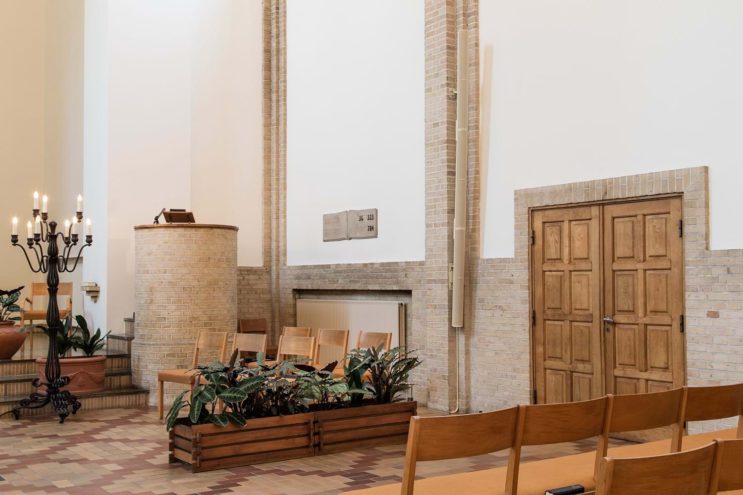 Som førnævnt er det vigtigt at højttalerne passer til det lokale de skal fungere i, og har du eksempelvis et langt lokale, kan det være en god ide at benytte det der kaldes en linearray-højttaler, som er en højere højttaler, der kan kaste lyden længere. Det kunne bl.a. være i en kirke som det ses på billedet nedenfor.
