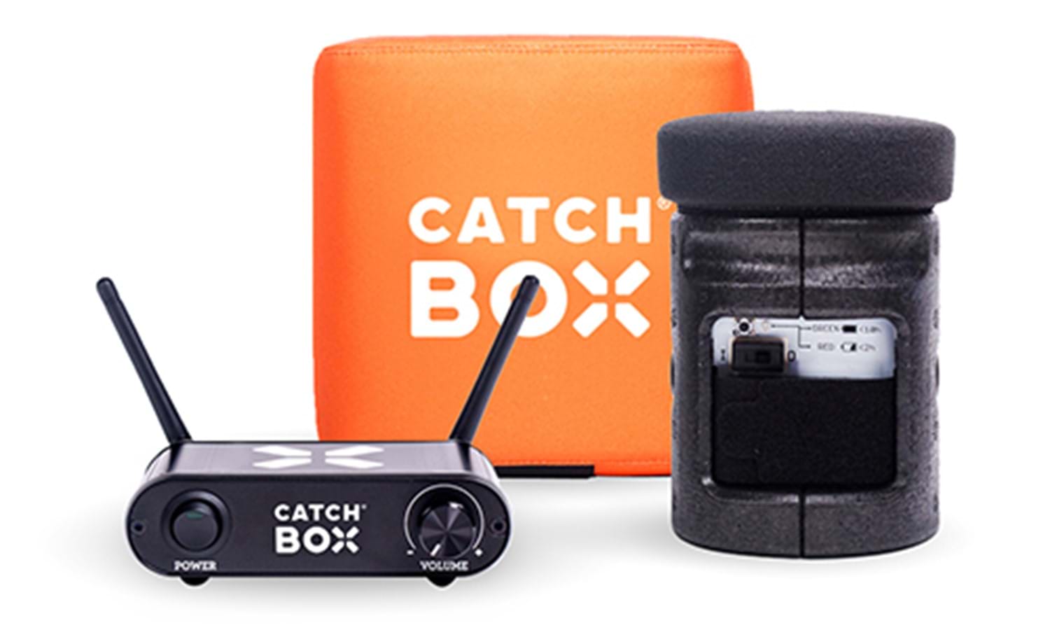 Catchbox er en blød terning, der måler 18x18x18 cm. Inden i terningen ligger der en trådløs mikrofon, der er koblet op på dit højttalersystem. Når der er et spørgsmål fra salen kastes Catchbox’en ned til spørgeren, der stiller sit spørgsmål ved at tale ned i Catchbox’en. En automatisk mute-funktion gør, at mikrofonen ikke er tændt, når den kastes rundt eller hvis den bliver tabt på gulvet.