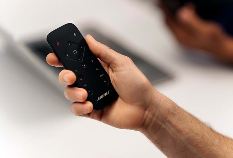 Når du køber en BOSE VB-S følger der, udover bordstander og vægbeslag, også en fjernbetjening med til styring af videobaren, så du slipper for at skulle håndtere dette via software.