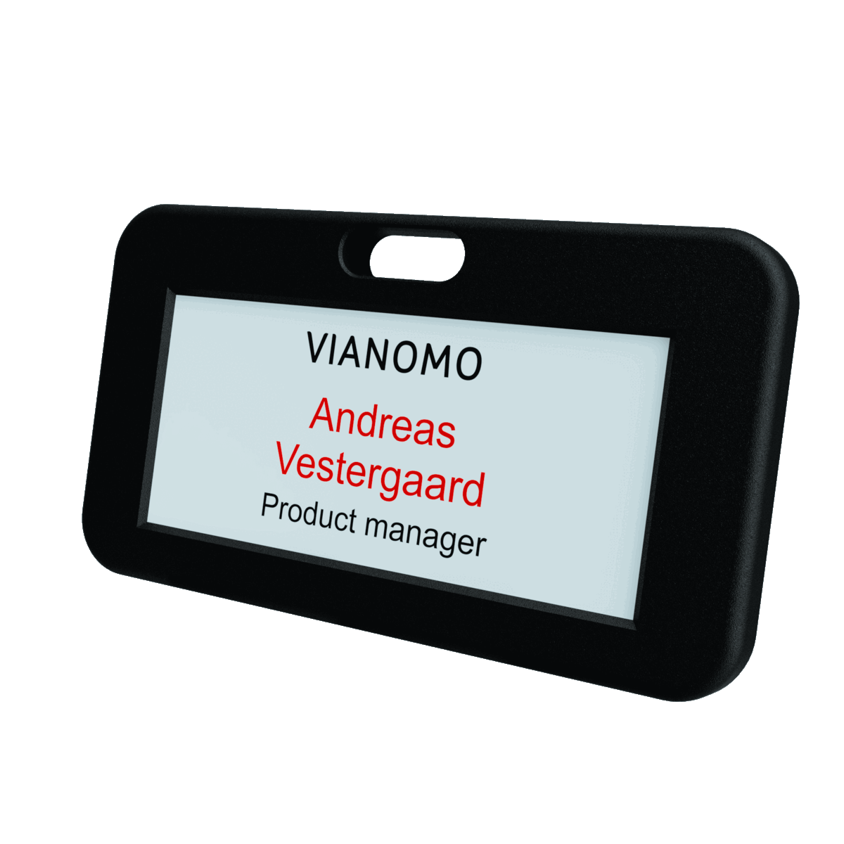 Ved at vælge VIANOMO digitale navneskilte bidrager du også til en mere bæredygtig fremtid. VIANOMO har lagt stor vægt på at bruge genbrugte materialer i fremstillingen af deres produkter.