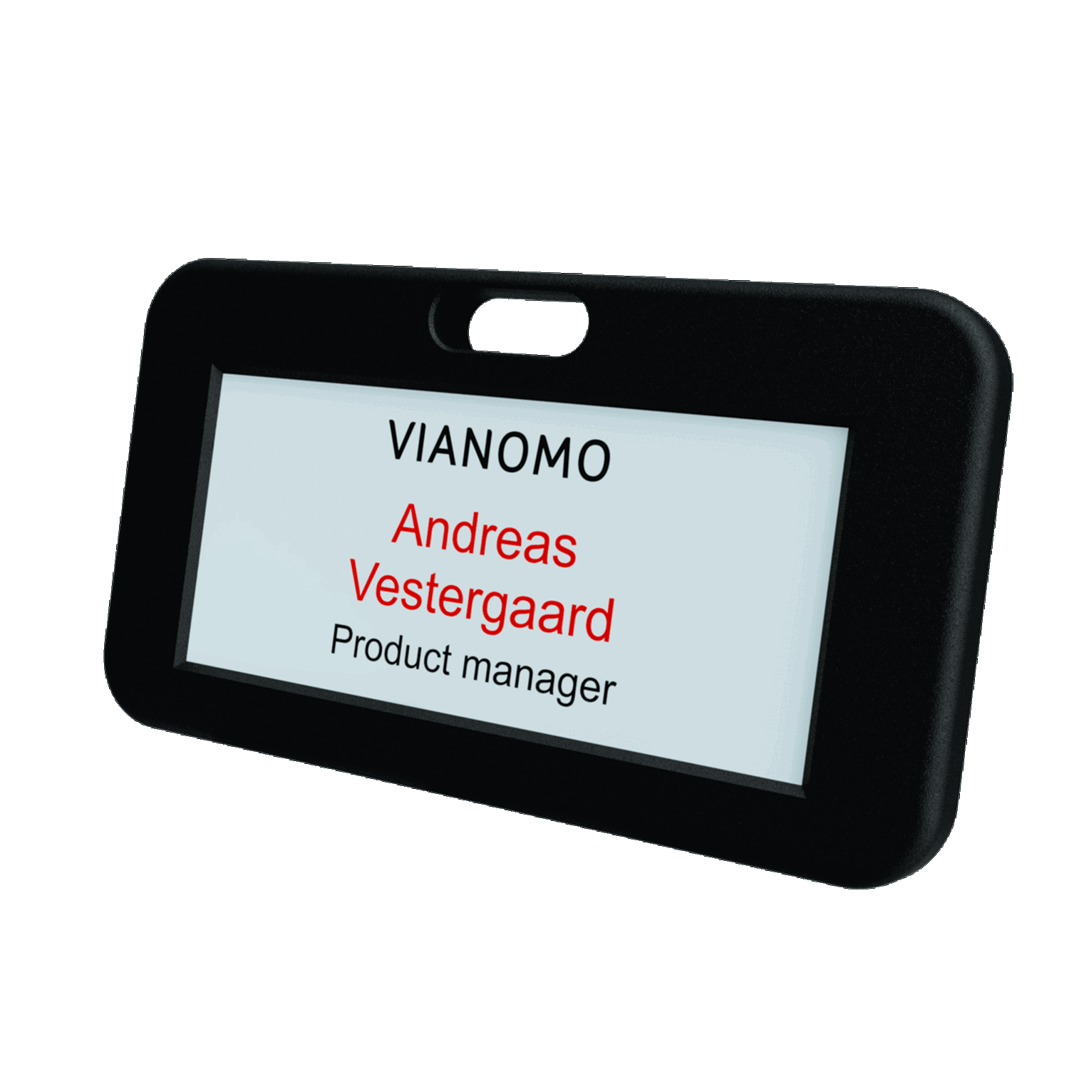 Med VIANOMO digitale navneskilte kan du let byde gæster velkommen til din virksomhed eller begivenhed på en intelligent og miljøvenlig måde. VIANOMO har skabt et system, der sparer tid og ressourcer. Det hele er indpakket i et elegant og moderne produkt, som vil medvirke til det positive indtryk af din virksomhed.