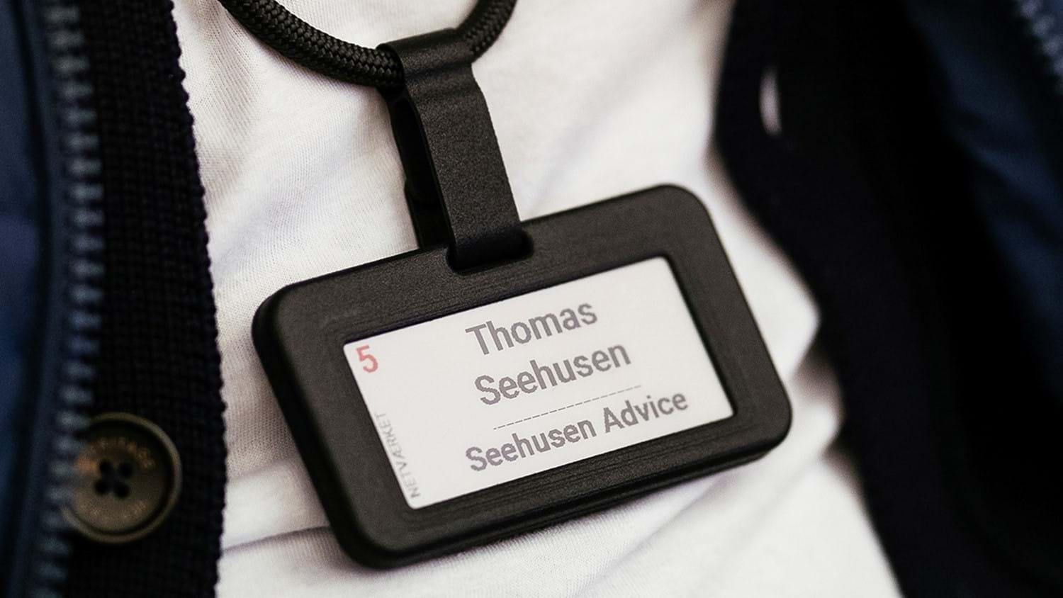 Ved blot at indtaste deres navn eller scanne en QR-kode får gæsterne øjeblikkeligt tildelt deres digitale navneskilt via en elegant skærm. Det er hurtigt, effektivt og giver et imponerende første indtryk, samtidig med at det bidrager til at reducere papirspild.
